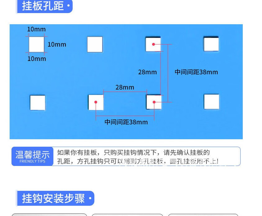 VLEN 도구 후크 사각형 구멍 구멍 보드 후크 도구 후크 디스플레이 랙 후크 선반 후크 단일 경사스토어 가기