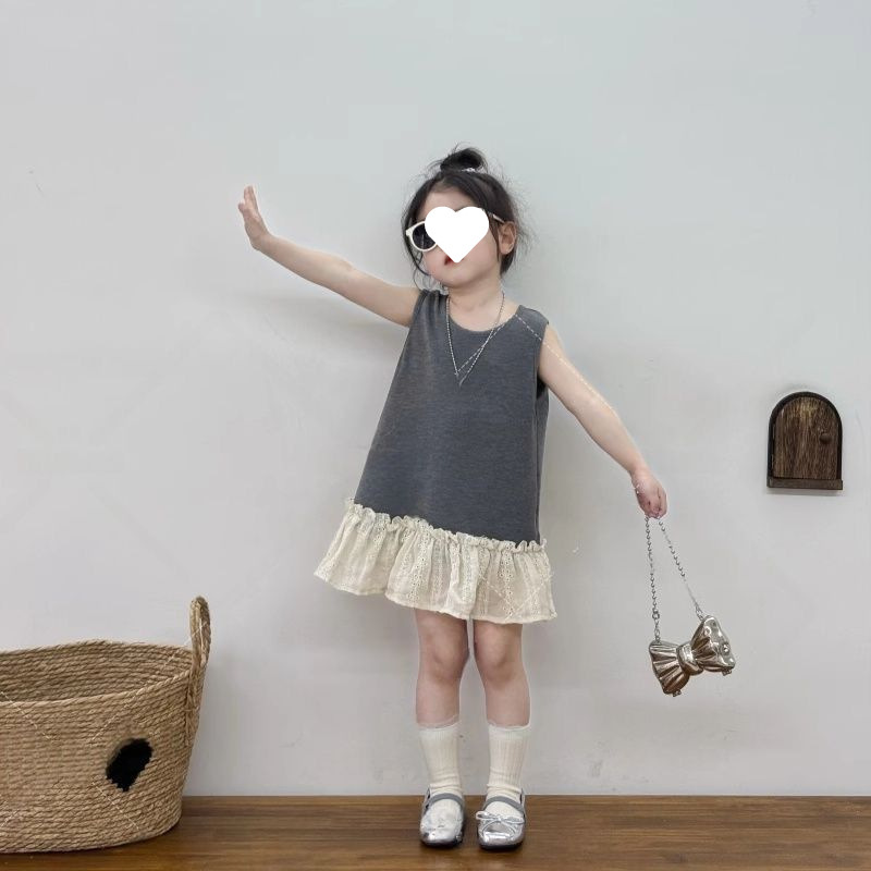 여자 여름 새로운 스타일 2025 어린이 아기 미니멀리스트 민소매 스태킹 조끼 드레스 여자 레이스 스커트 드레스