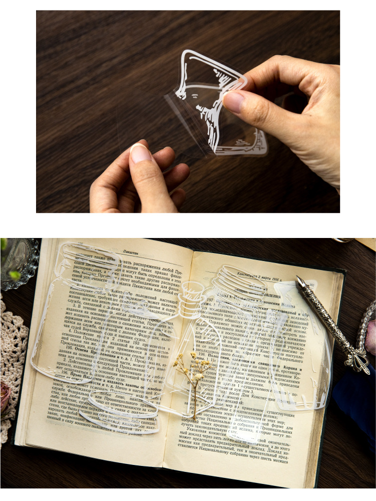 Yanji 스티커 팩 용기 수집가 시리즈 PET 소재 콜라주 병 투명 베이스 DIY 식물 장식