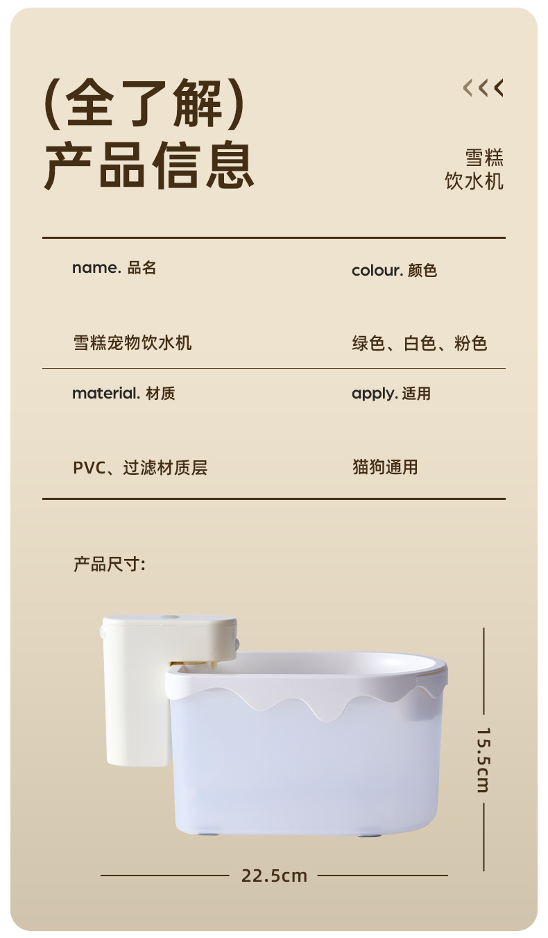새로운 무선 고양이 마시는 분수 아이스크림 모양 애완 동물 마시는 분수 물 전기 분리 마시는 분수 국경 간 도매스토어 가기