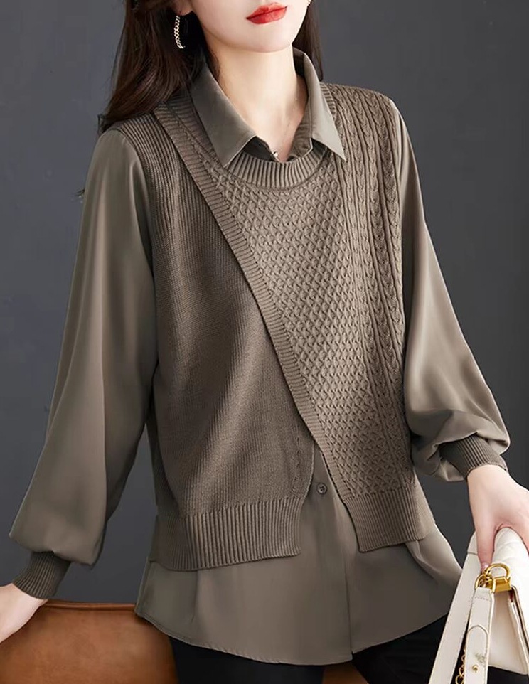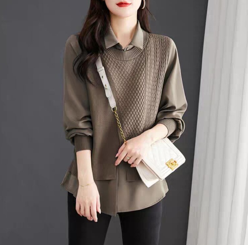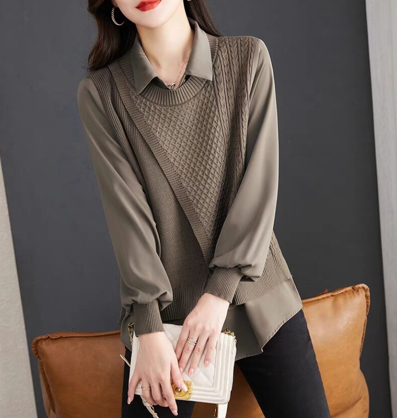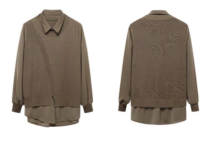 여성용 페이크 투피스 셔츠와 스웨터 조합, 2026년 초가을 신상 디자인, 레트로 패션, 독특한 베이스 레이어 니트웨어스토어 가기