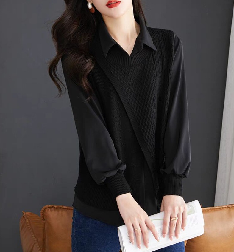 여성용 페이크 투피스 셔츠와 스웨터 조합, 2026년 초가을 신상 디자인, 레트로 패션, 독특한 베이스 레이어 니트웨어