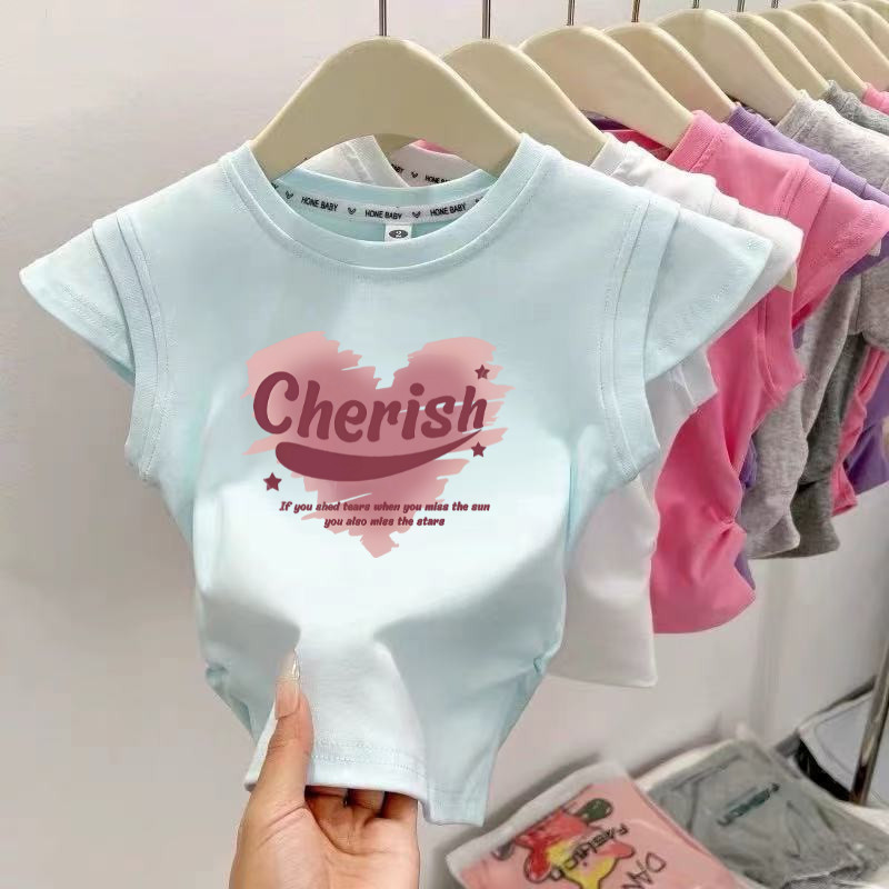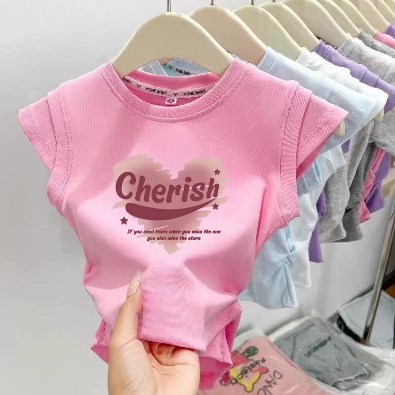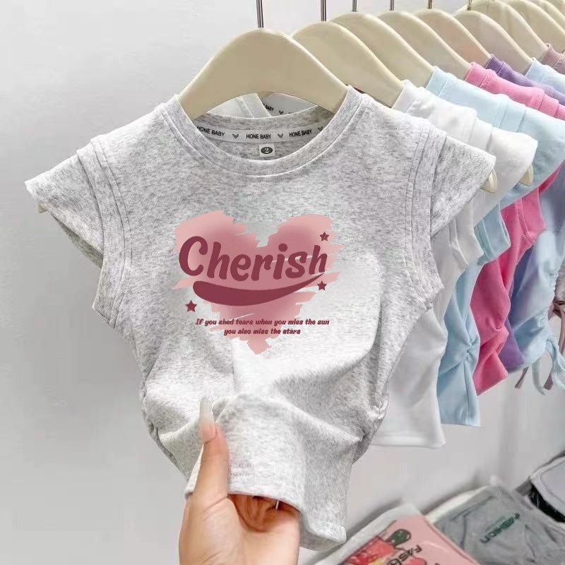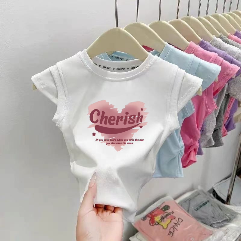 소녀 만화 프린트 반팔 셔츠 여름 새로운 캐주얼 슬림 민소매 반팔 탑 어린이 순수 코튼 바닥 셔츠스토어 가기