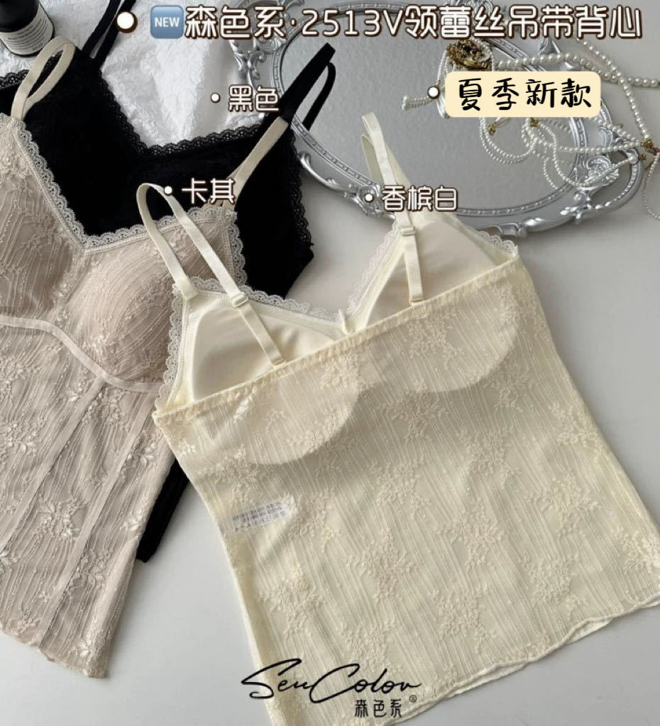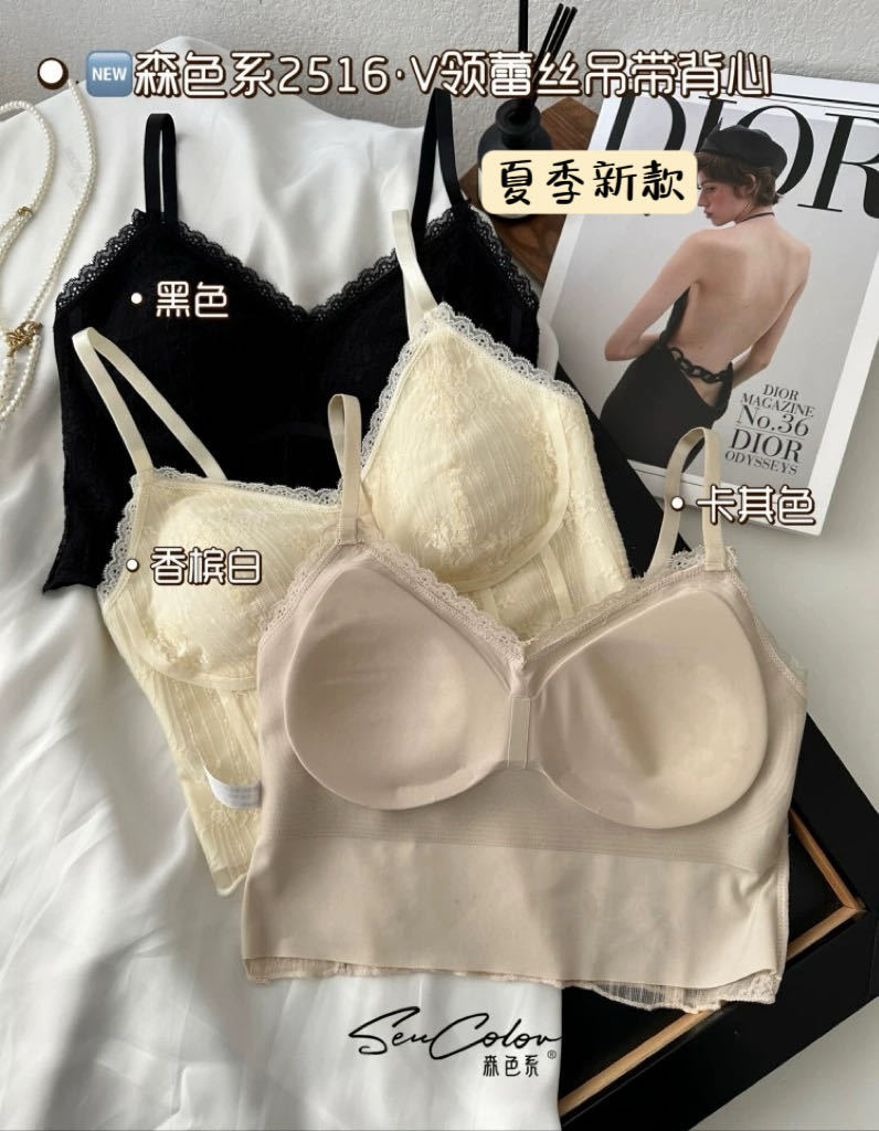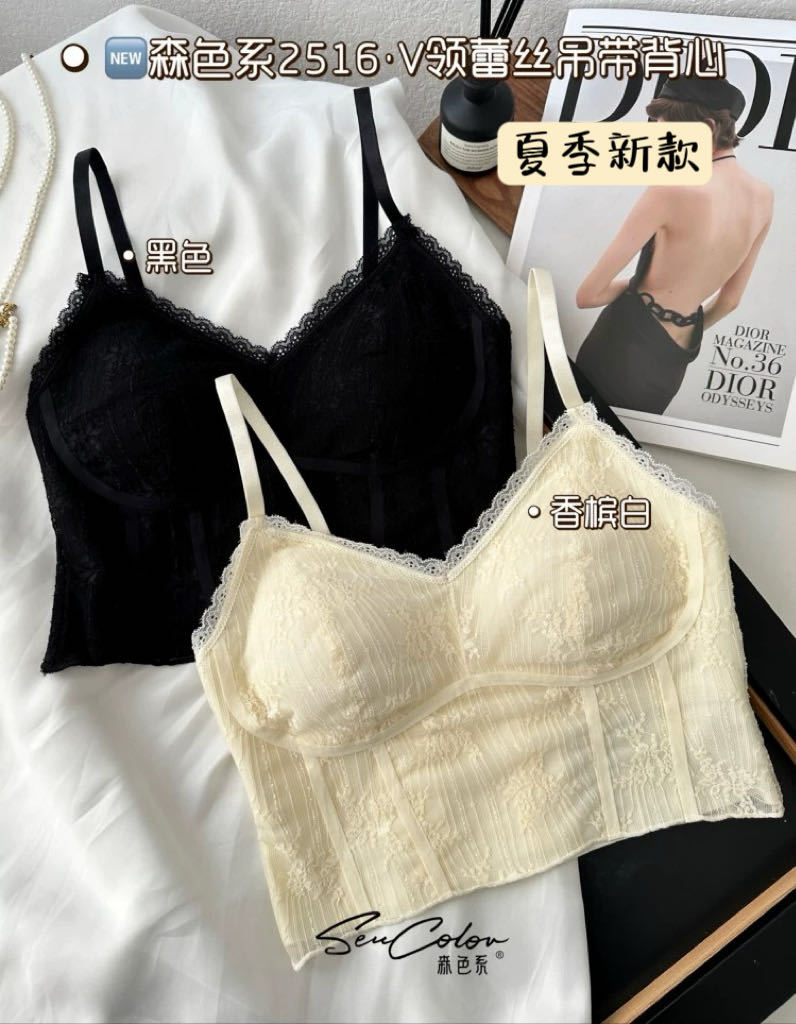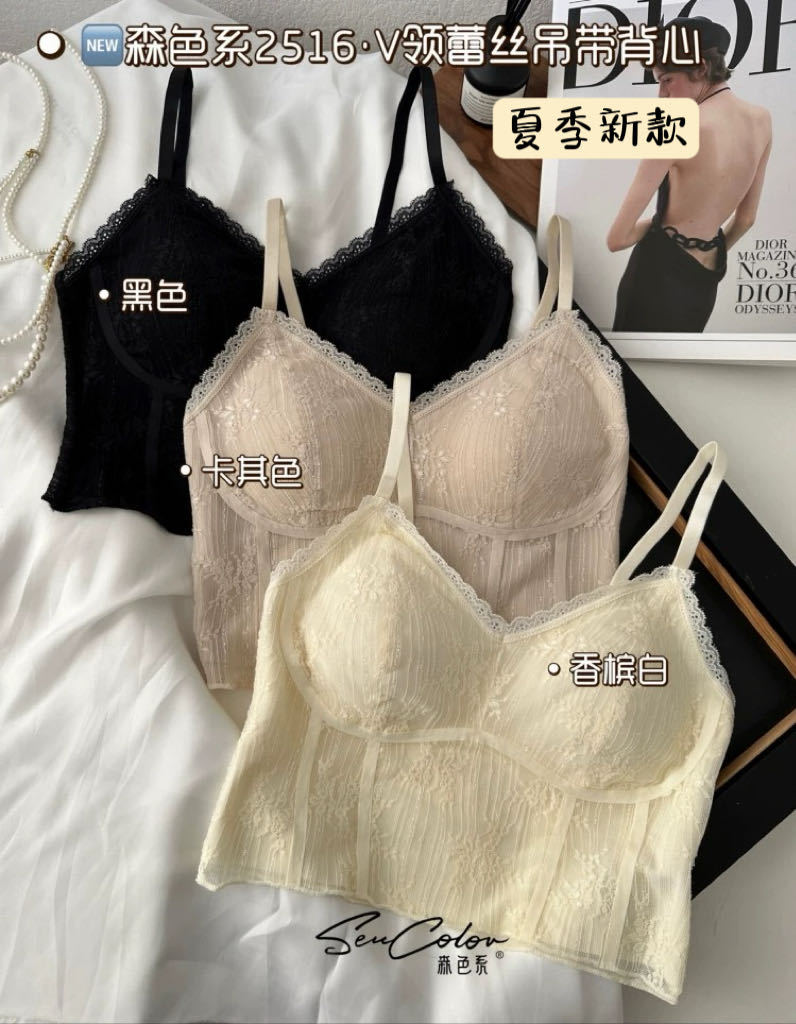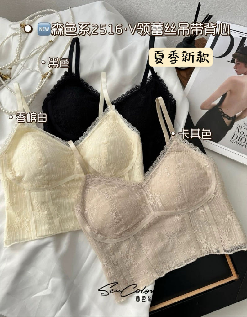 여성용 프렌치 섹시 레이스 아름다운 백 캐미솔, 가슴 패드가 있는 여성용 이너웨어, 여성용 화이트 밑단 민소매 탑스토어 가기