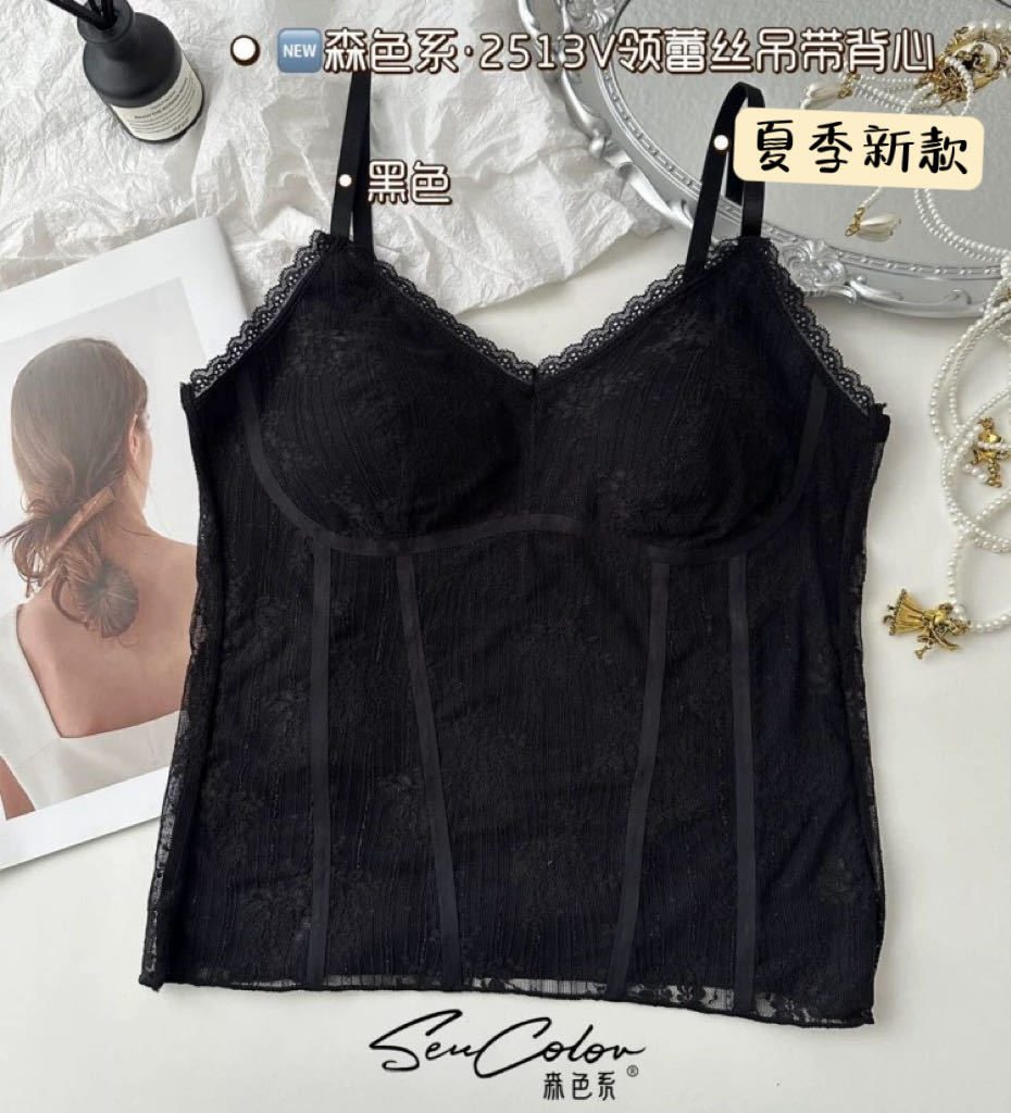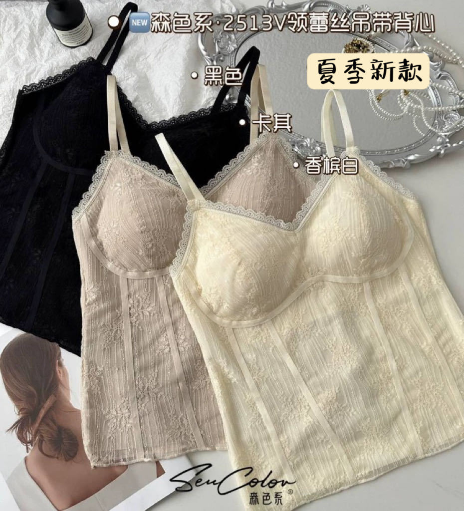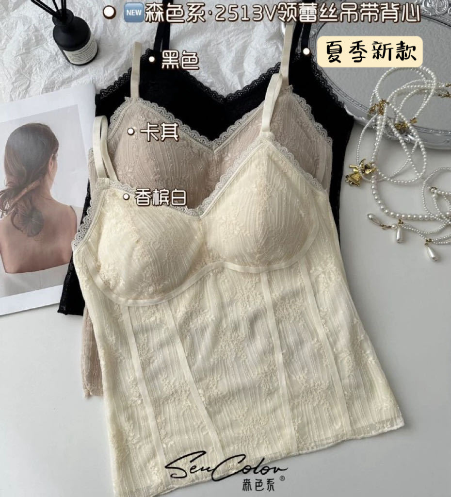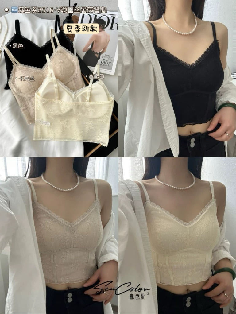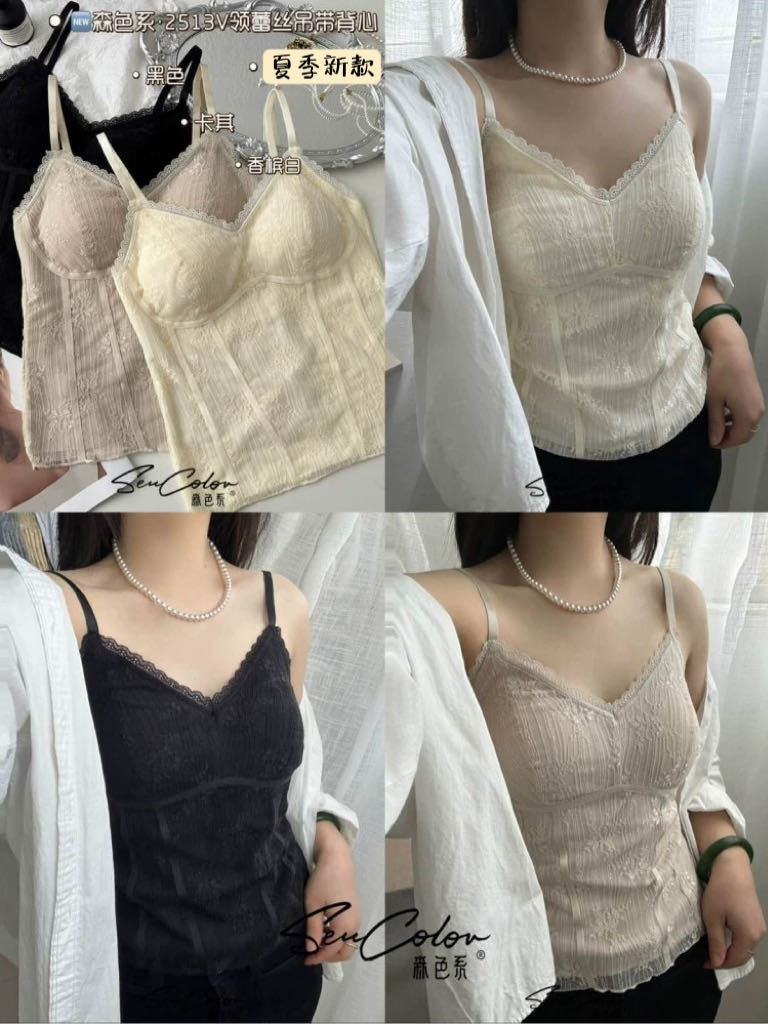 여성용 프렌치 섹시 레이스 아름다운 백 캐미솔, 가슴 패드가 있는 여성용 이너웨어, 여성용 화이트 밑단 민소매 탑스토어 가기