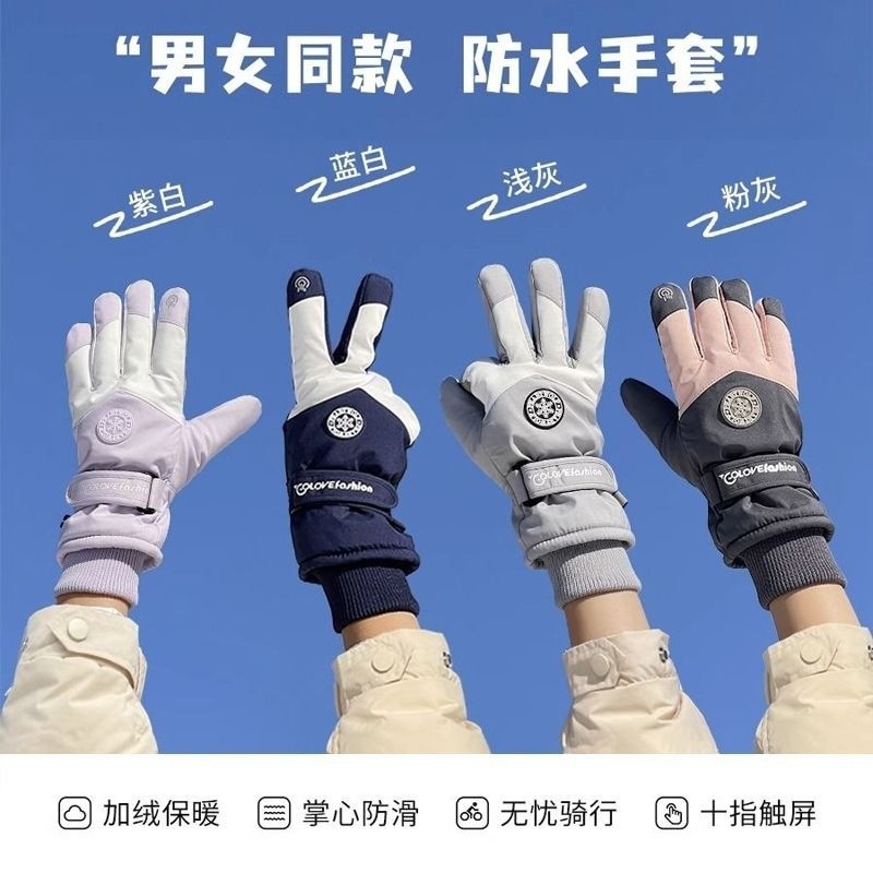 겨울 스키 장갑 야외 사이클링 방수, 미끄럼 방지 및 방풍 3층 플러스 벨벳 충전 면 따뜻한 터치 스크린 장갑 남성용 및 여성용스토어 가기
