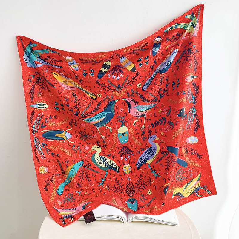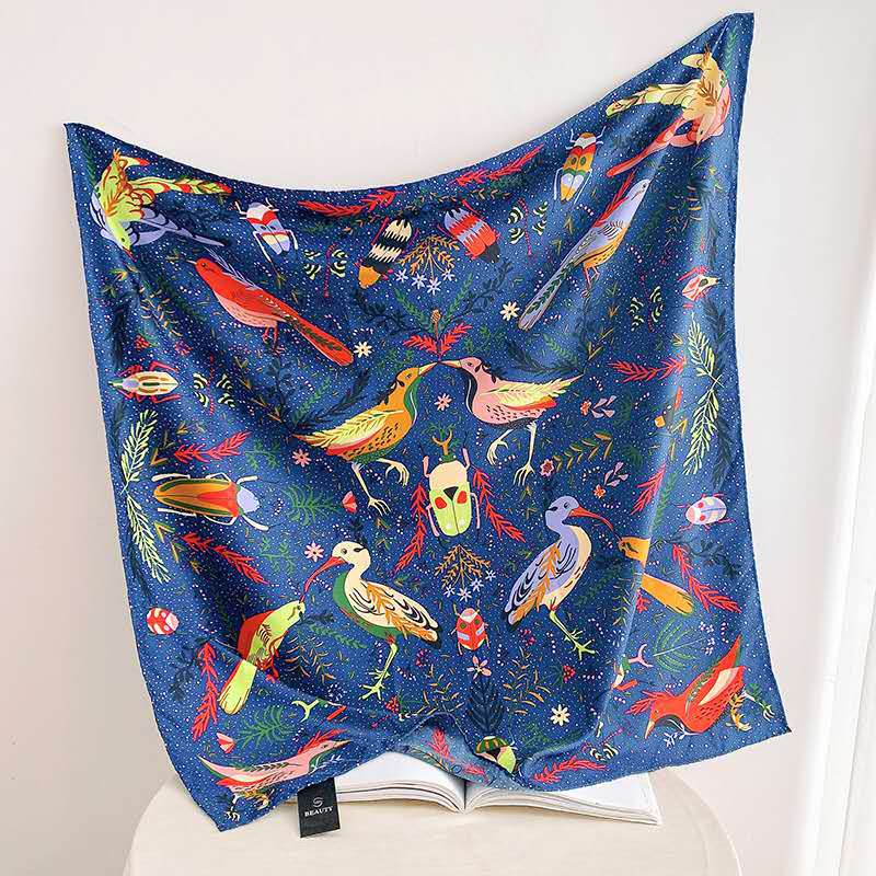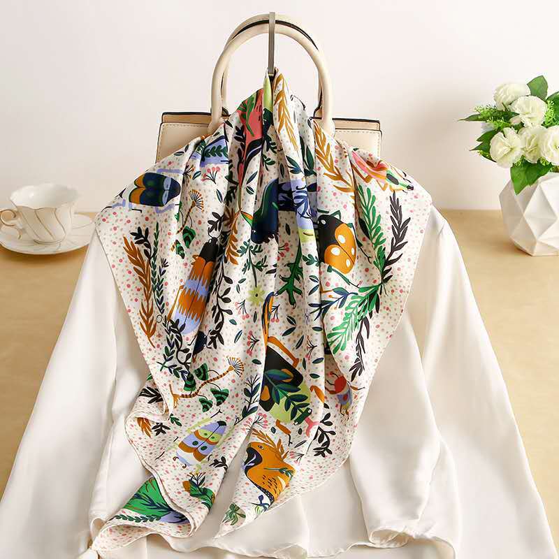 여성을 위한 세련되고 화려한 프린트 실크 스카프, 인터넷 연예인 스타일, 대비되는 색상, 실크처럼 부드러운 모조 실크 대형 사각형 스카프 90cm, 매치하기 쉬운 숄 도매스토어 가기