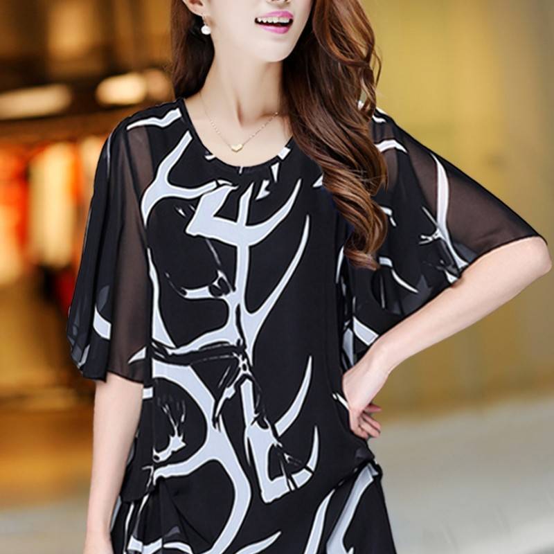 플러스 사이즈 여성 배 커버 쉬폰 셔츠 뚱뚱한 여성을 위한 봄옷, 여름옷, 신상 2025 몸매 숨기기 100kg 상의스토어 가기