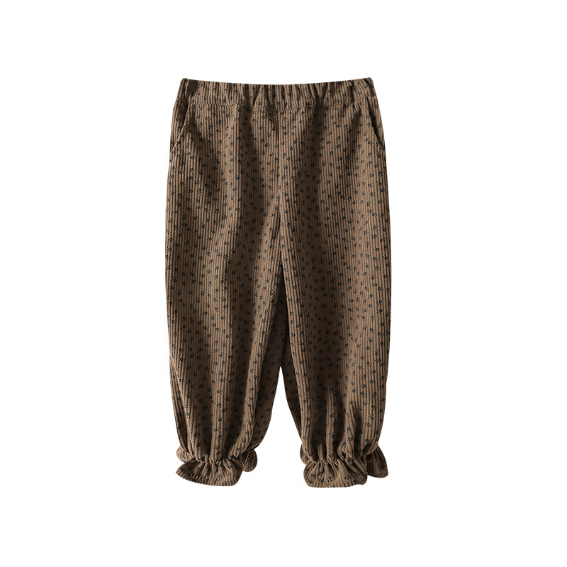 Wulibuyi 소녀의 발 레이스 꽃무늬 짠 바지 2025 가을 신작 아동 패션 루즈 캐주얼 바지스토어 가기