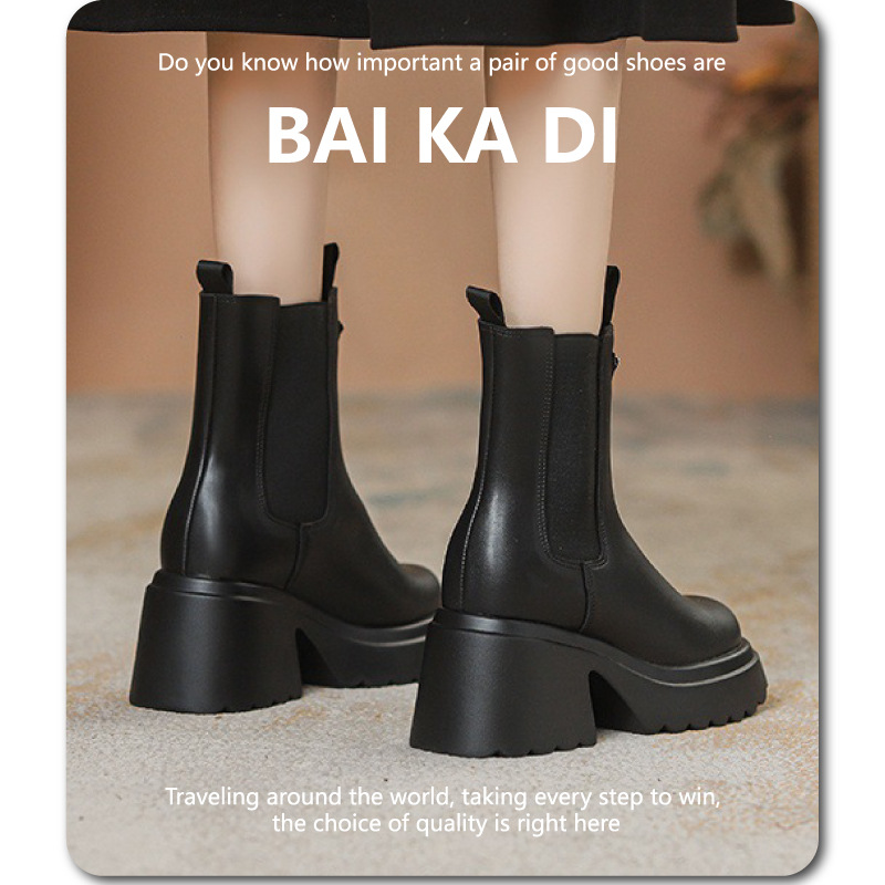 광택 있는 두꺼운 밑창 삼각형 숏부츠 여성용 키 작은 여성용 가을 겨울 부츠 12CM 키높이 신축성 슬림 부츠 여성용스토어 가기