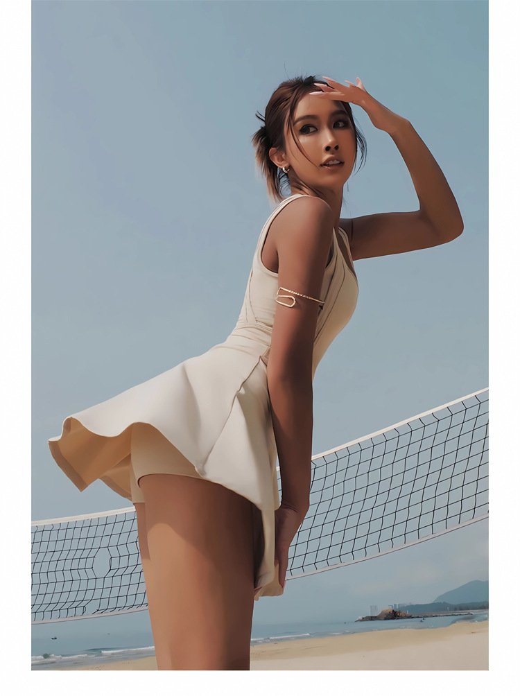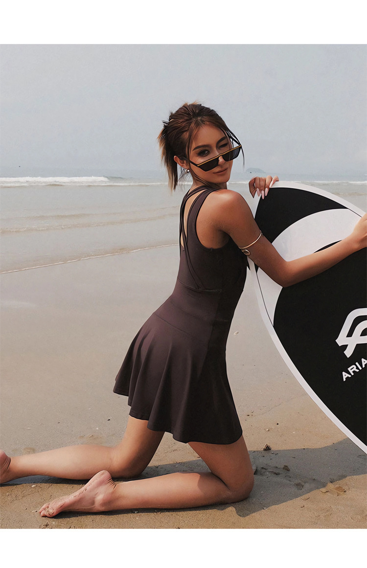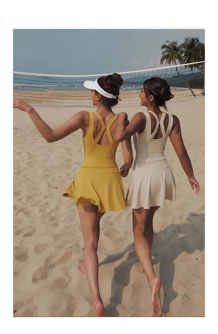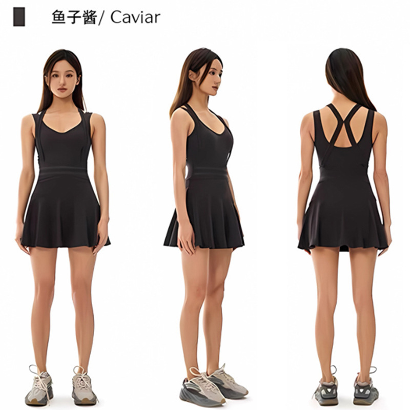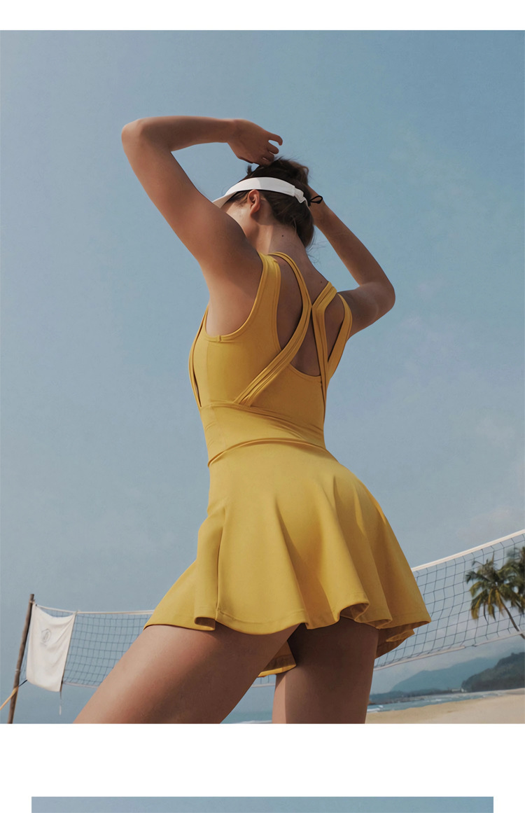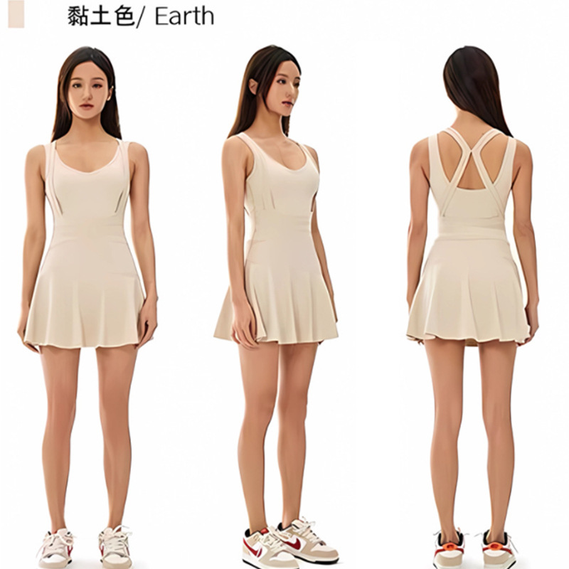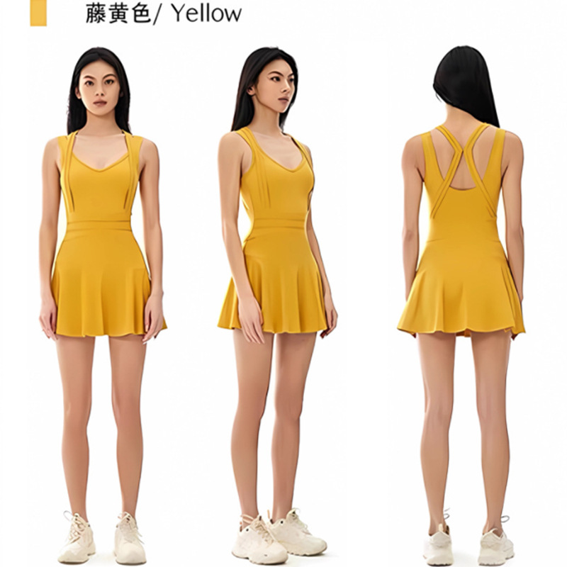 여름 신작 스포츠 테니스 드레스 노출 방지 민소매 아름다운 등 수분 흡수 요가웨어 여성용 피트니스 슈트