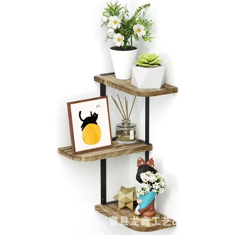국경 간 철과 목재 결합 벽 장식 선반 벽걸이 형 3 층 수납 선반 욕실 코너 세면 용품 보관 선반
