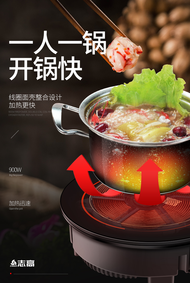 Chigo 인덕션 쿠커 전골 레스토랑 상업용 원형 내장형 단일 회전식 1인용 1냄비 특수 스토브스토어 가기