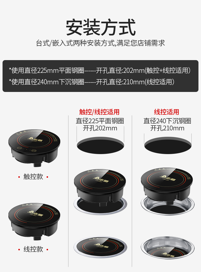 Chigo 인덕션 쿠커 전골 레스토랑 상업용 원형 내장형 단일 회전식 1인용 1냄비 특수 스토브