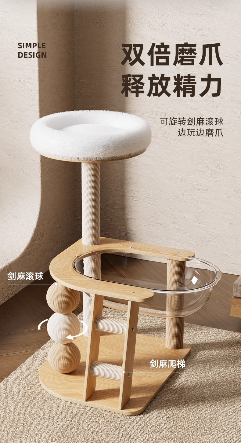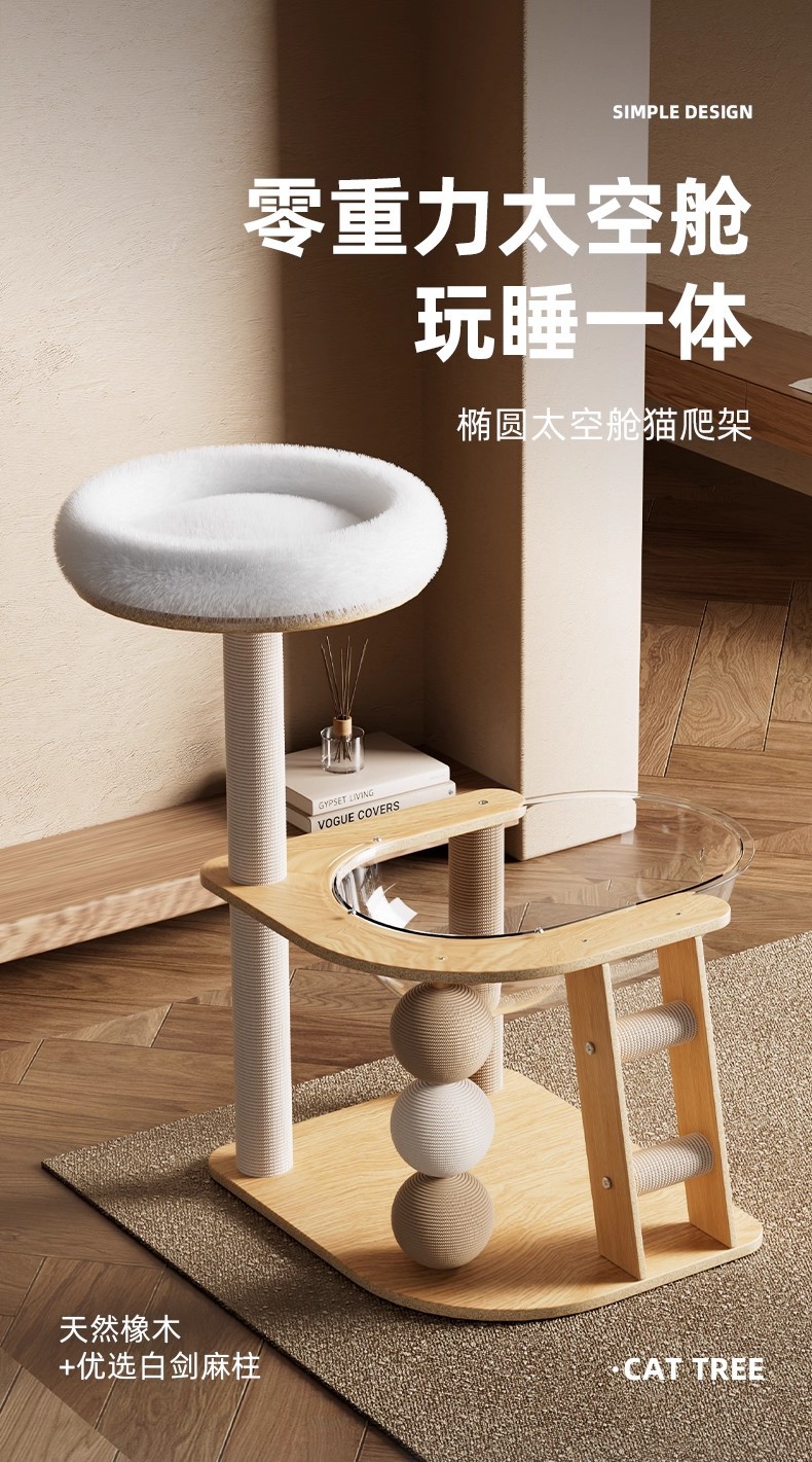 새로운 고양이 장난감 고밀도 보드 고양이 집과 고양이 아파트와 산호 초 파고다 고양이 클라이밍 프레임이있는 투명한 우주 캡슐 도매
