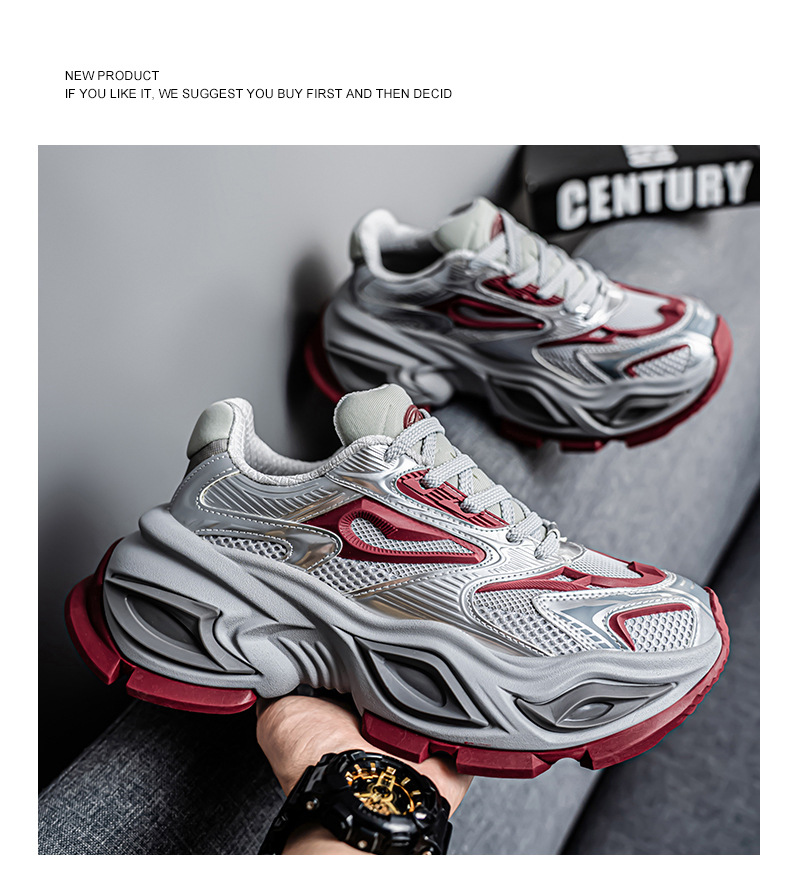 2025년 새로운 여름 청소년 남성 신발, 맞춤형 틈새 통기성 아빠 신발, 두꺼운 밑창, 스포츠 스타일 캐주얼 신발