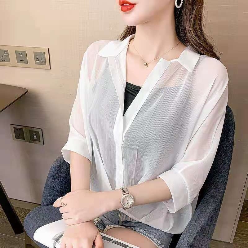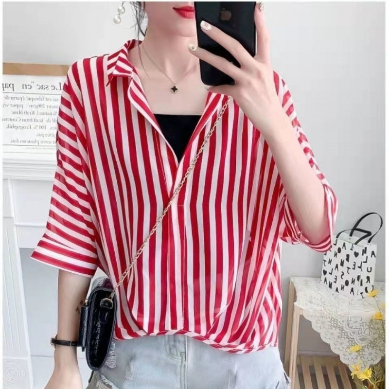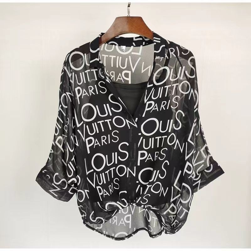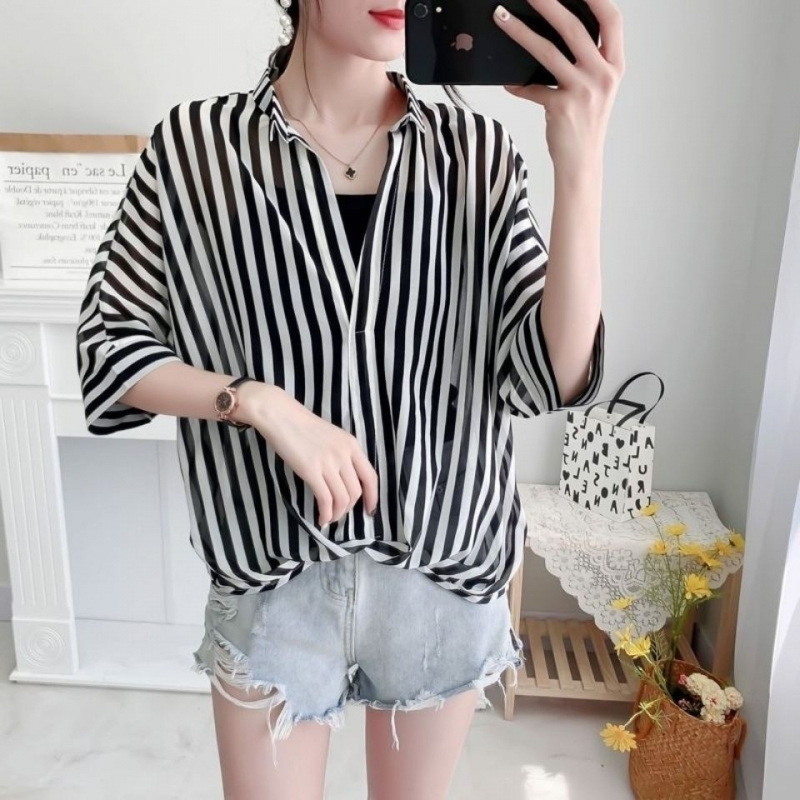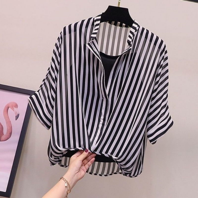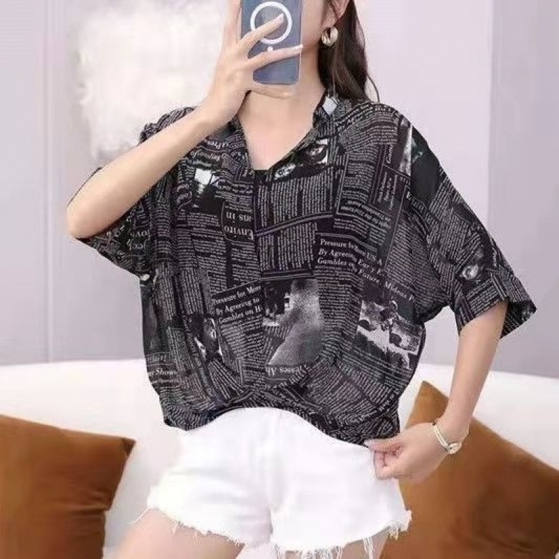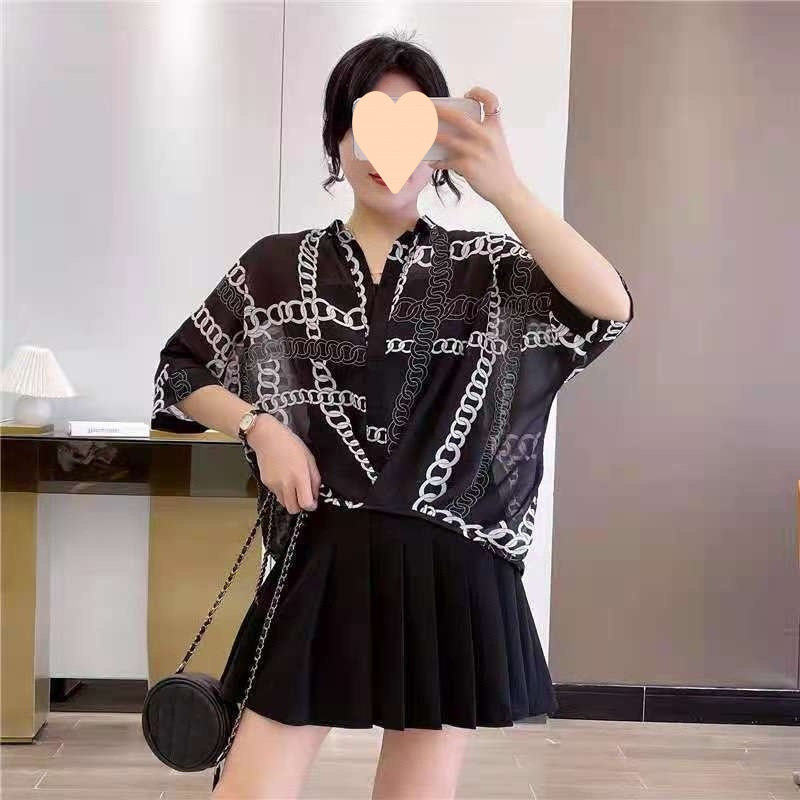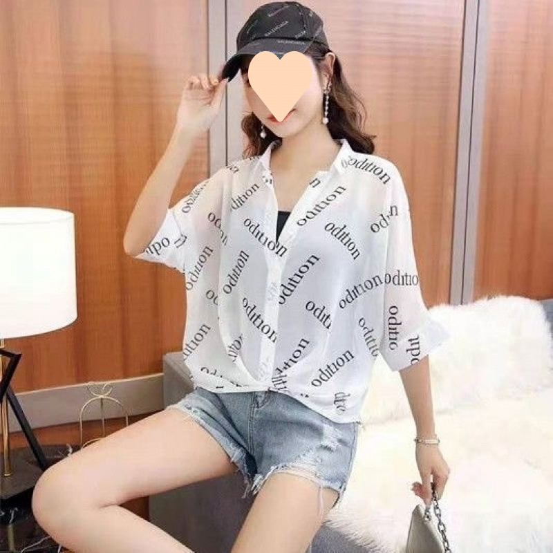 여성용 쉬폰 셔츠 투피스 세트 여름 느슨한 반팔 허리 탑 새로운 작은 꽃 무늬 셔츠 레오파드 프린트 탑스토어 가기