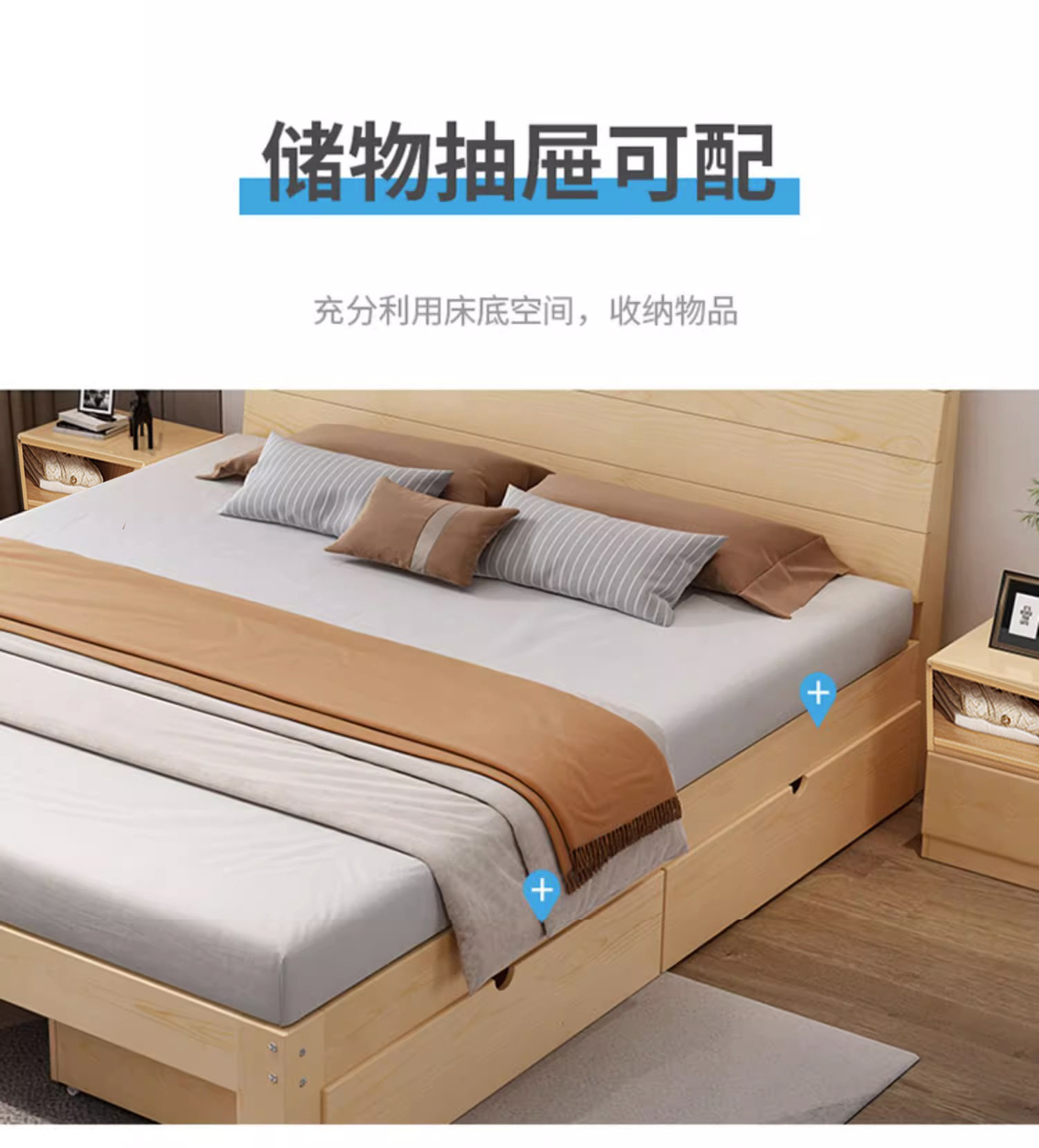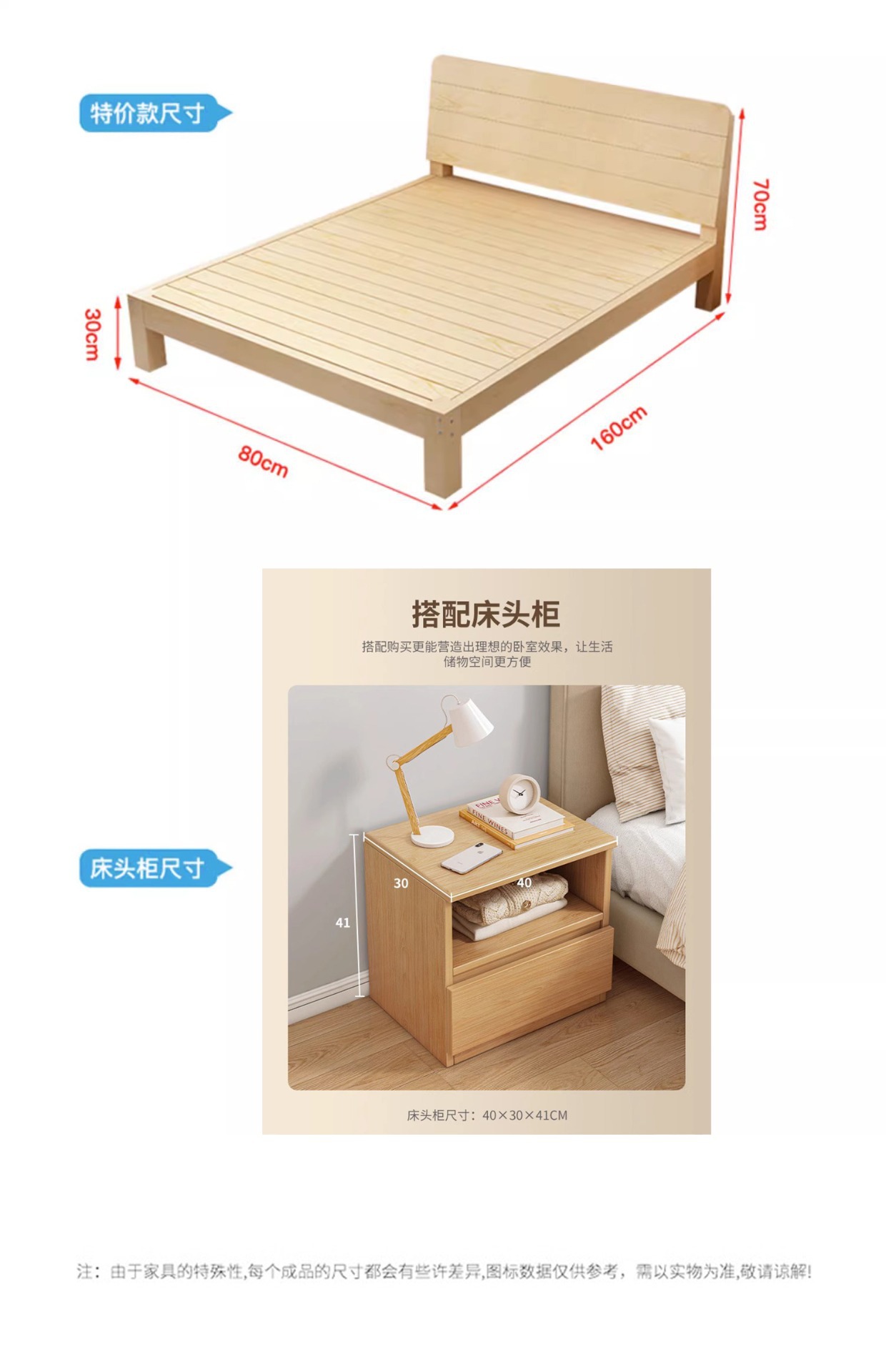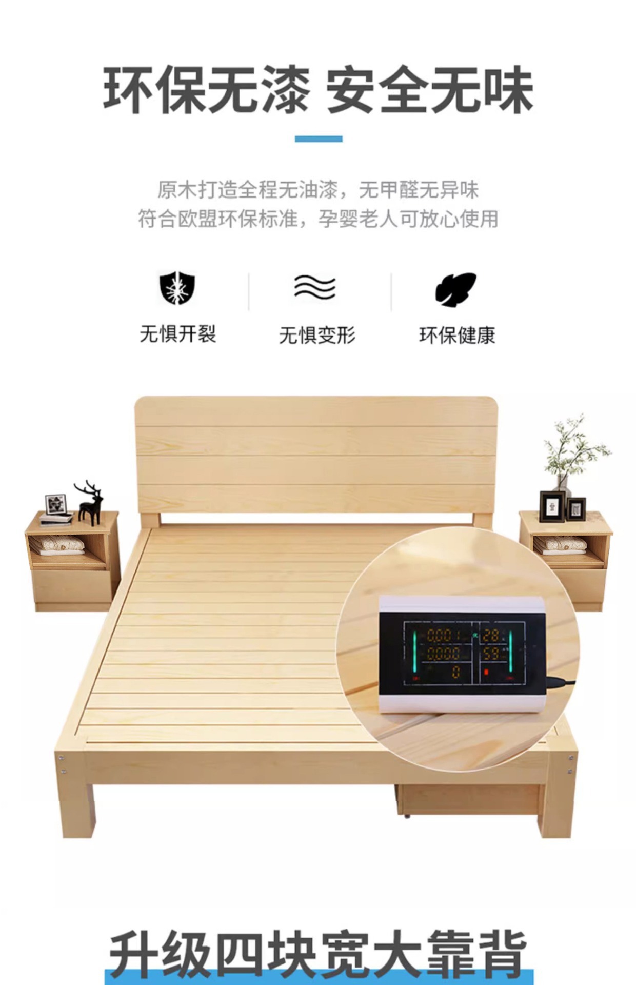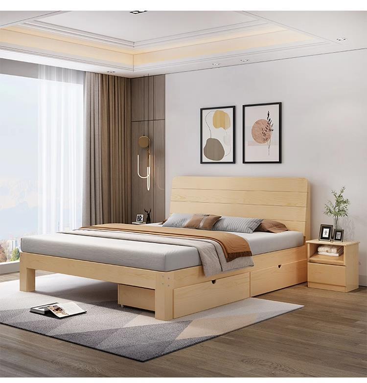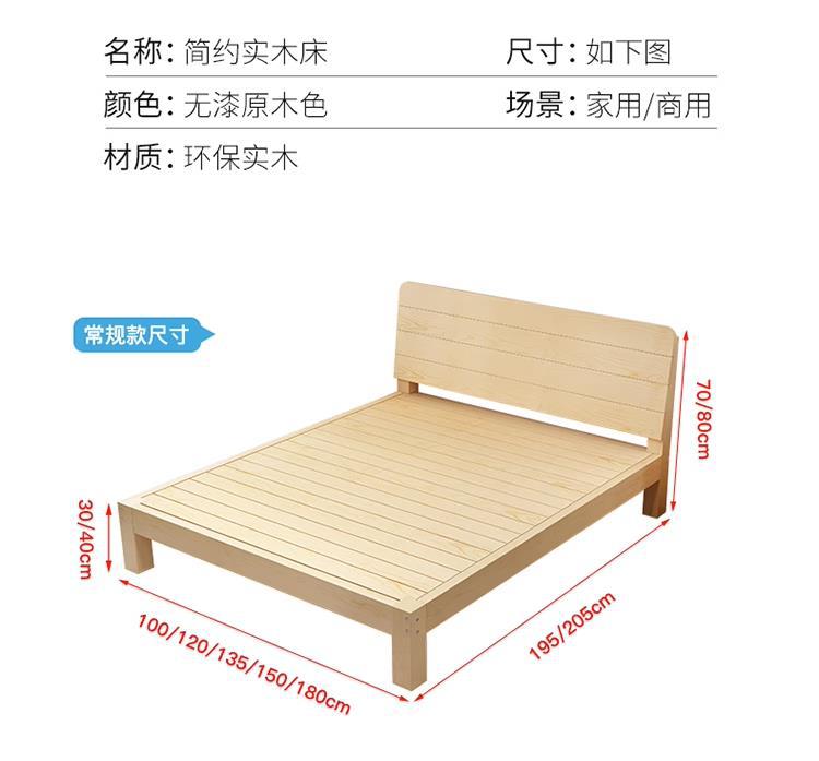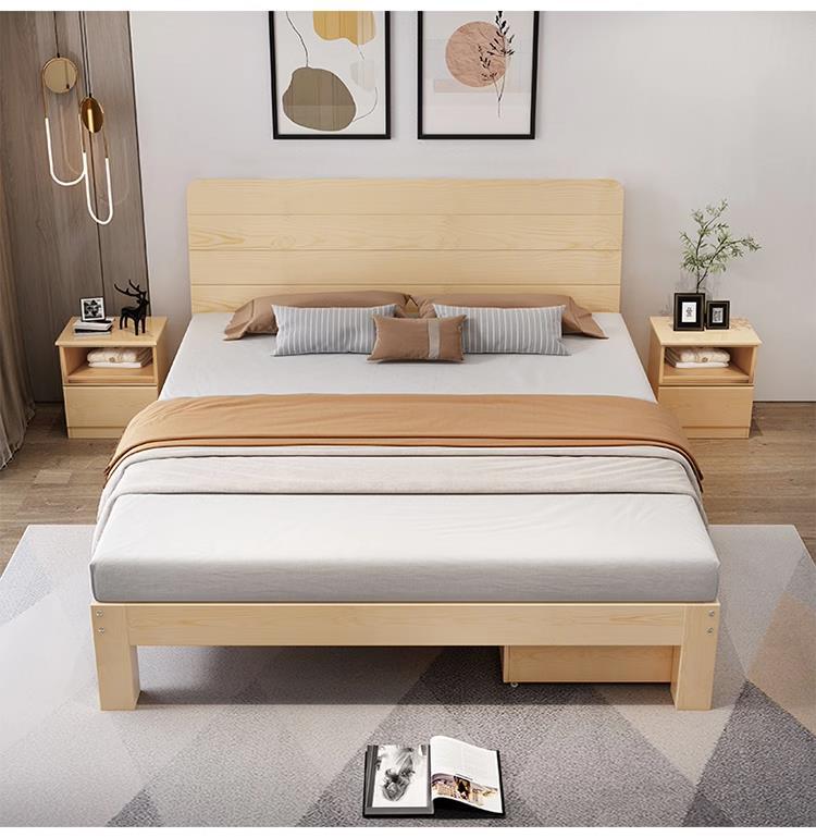 원목침대 임대실 1.8m 모던 심플 더블침대 경제적인 1.5m 소나무 심플 싱글 침대 프레임 1.2