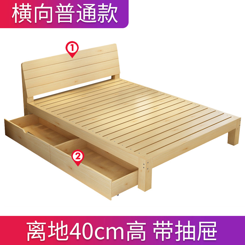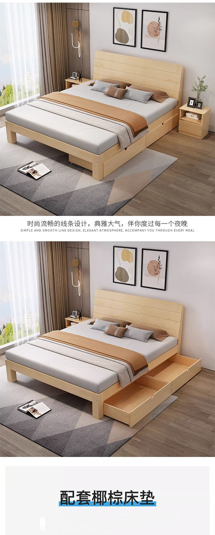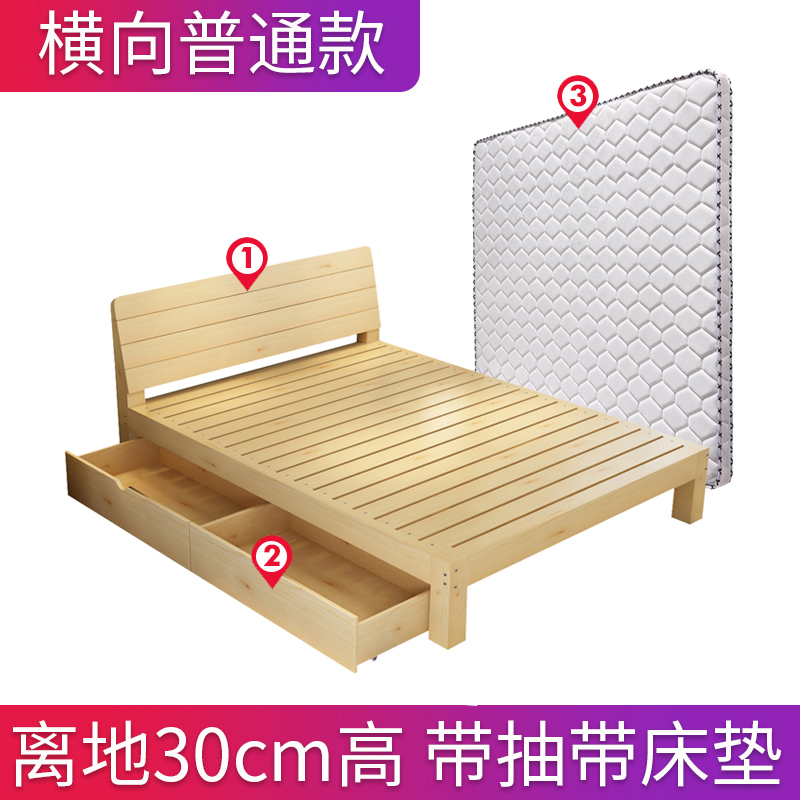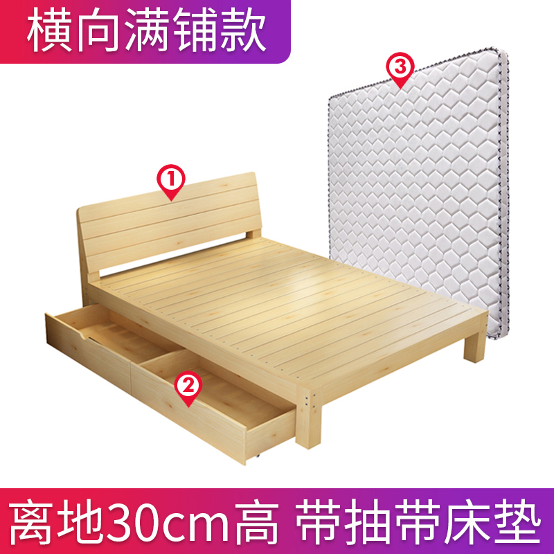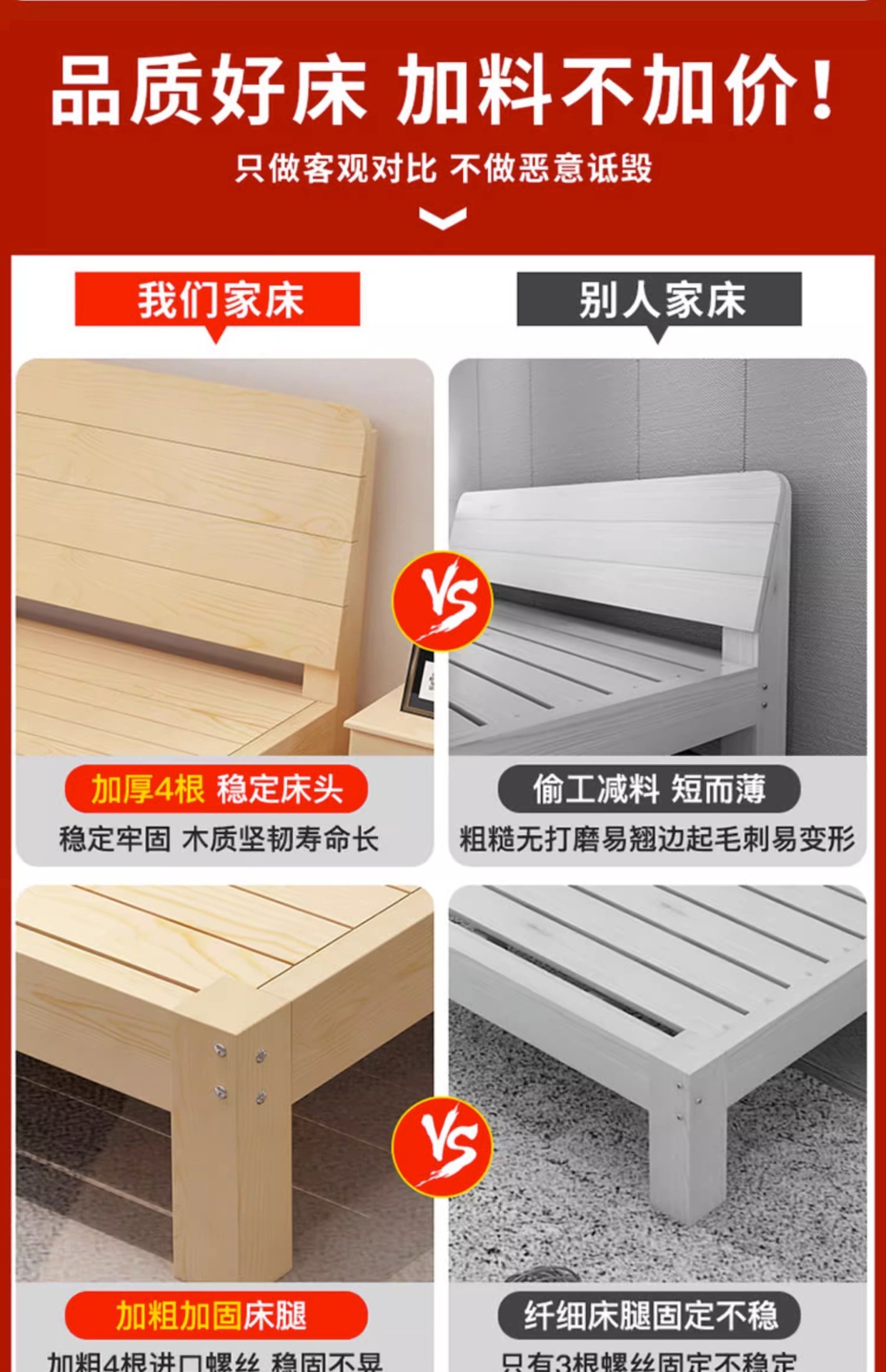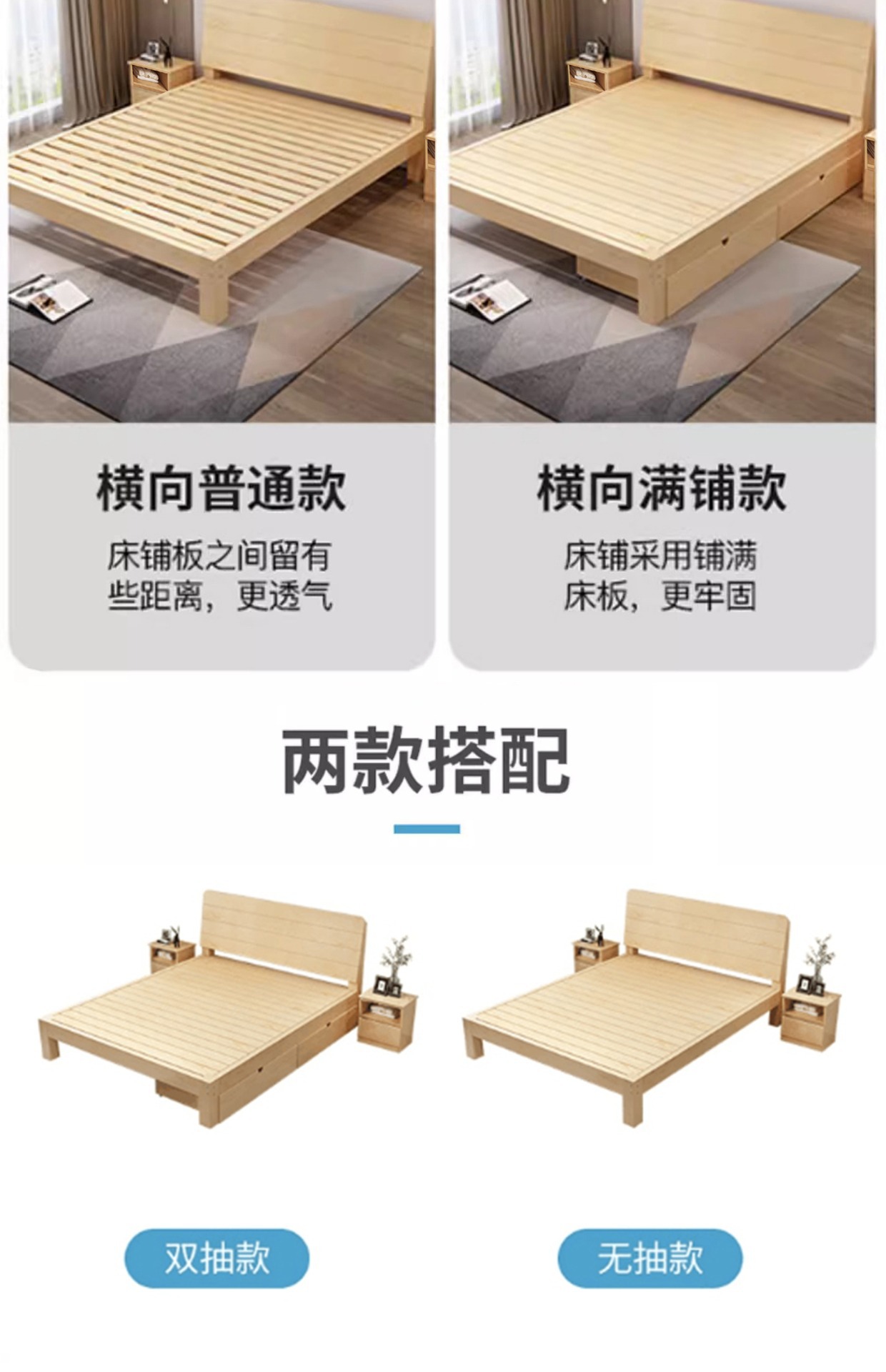원목침대 임대실 1.8m 모던 심플 더블침대 경제적인 1.5m 소나무 심플 싱글 침대 프레임 1.2