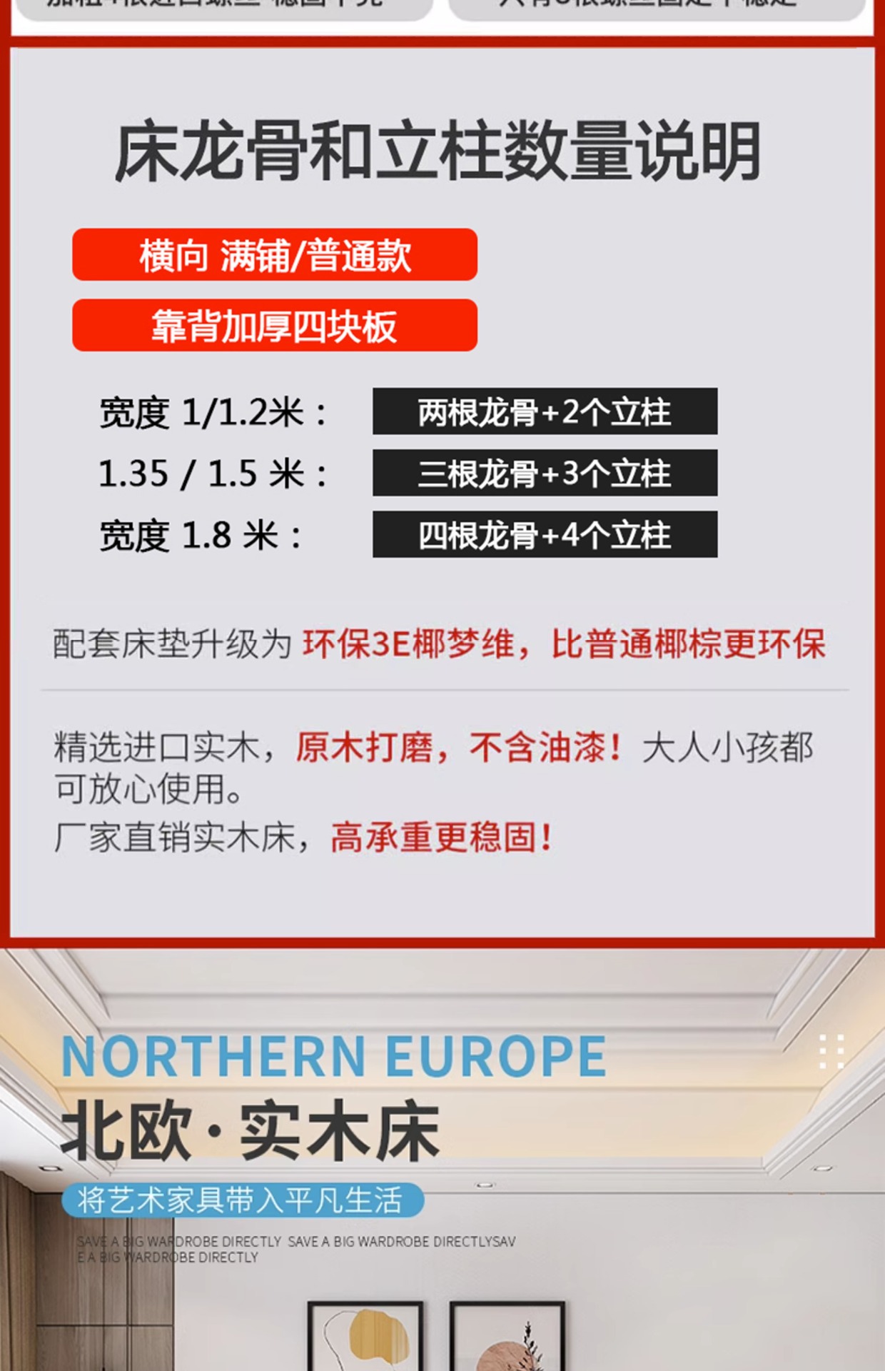 원목침대 임대실 1.8m 모던 심플 더블침대 경제적인 1.5m 소나무 심플 싱글 침대 프레임 1.2스토어 가기