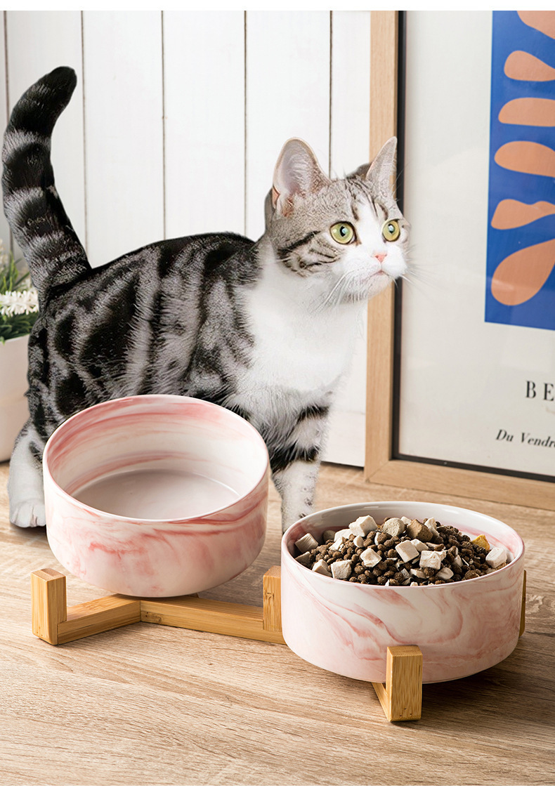 고양이 그릇 세라믹 높은 식품 그릇 고양이 밥 그릇 물 그릇은 경추를 보호하고 개를 넘어뜨리는 것을 방지합니다. 애완 동물 그릇 고양이 음식 그릇