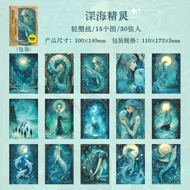 좋은 날 소재 종이 인어 일기 시리즈 복고풍 인어 핸드북 기본 소재 30장 6가지 스타일스토어 가기