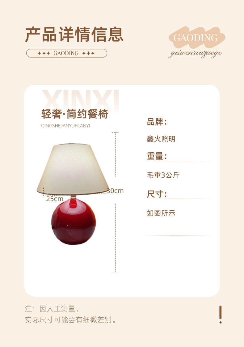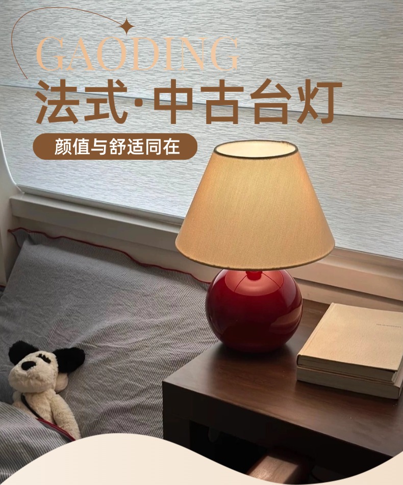 인터넷 연예인 인기 야간 조명 프랑스 밤나무 중세 연구 테이블 램프 복고풍 일본 침실 세라믹 분위기 침대 옆 램프스토어 가기