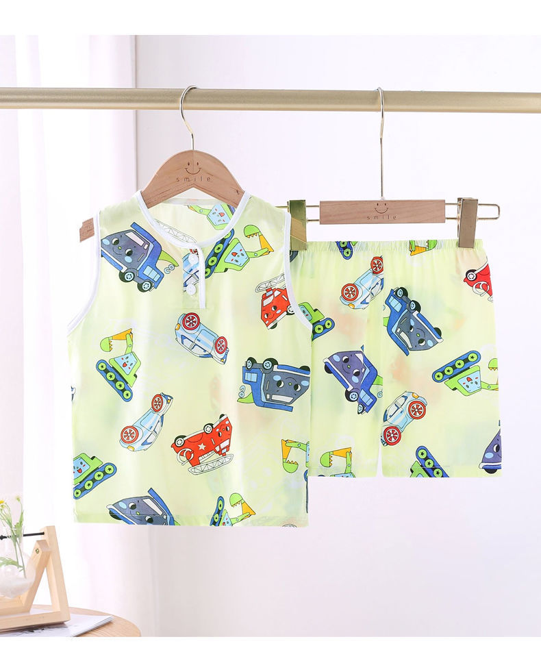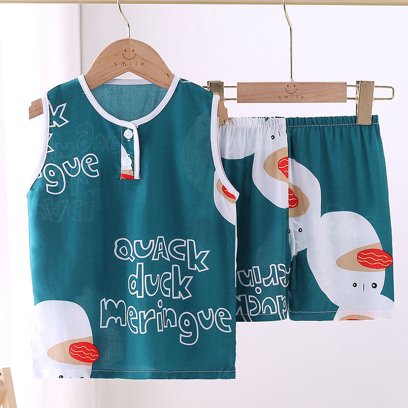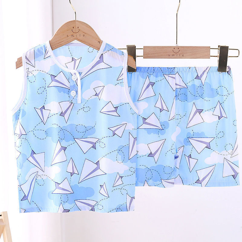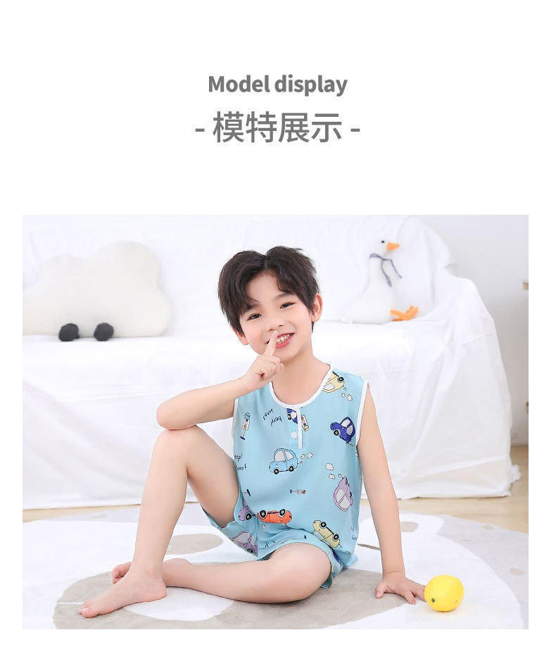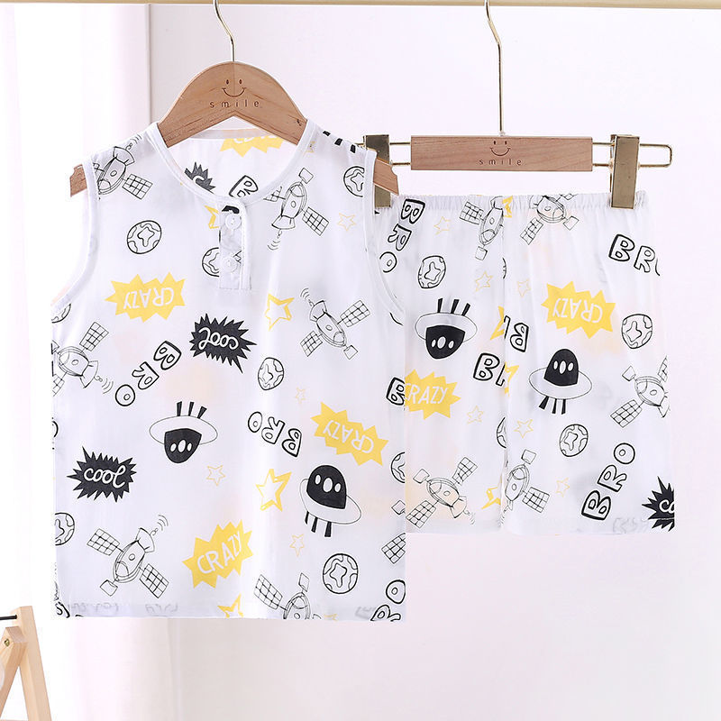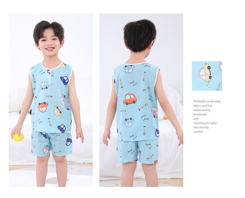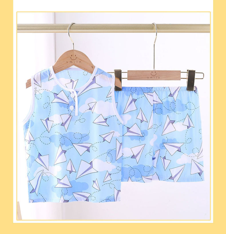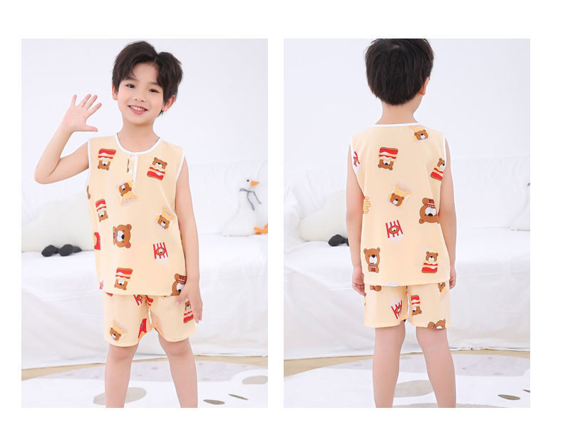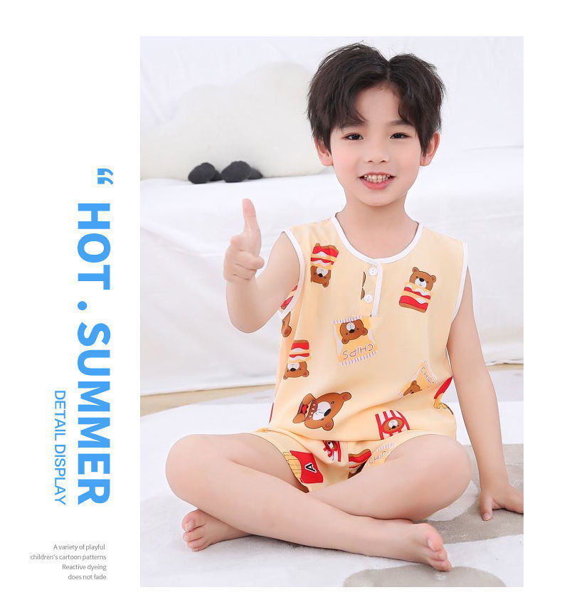 어린이를위한 조끼 정장 여름 면화 실크 소년과 소녀 얇은 민소매 반팔 잠옷 에어컨 가정 의류스토어 가기