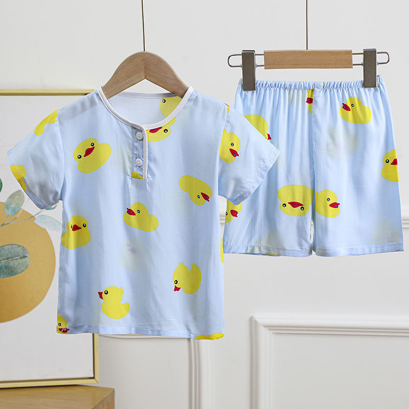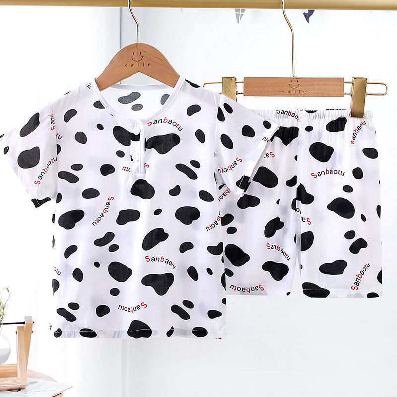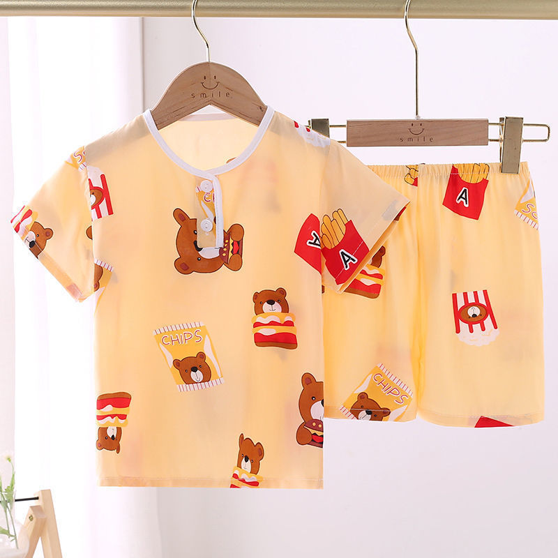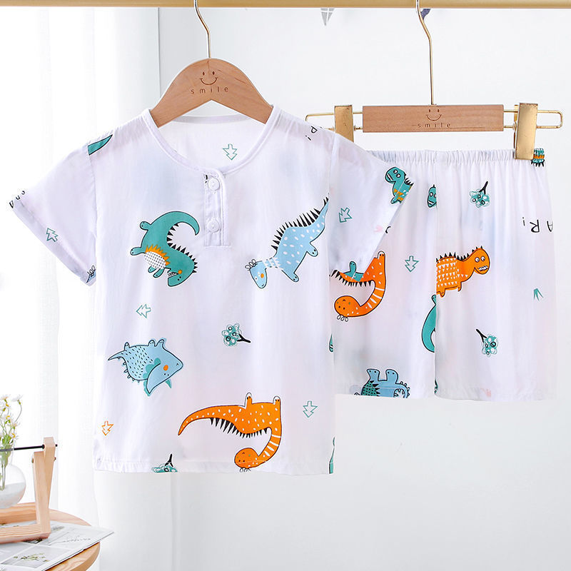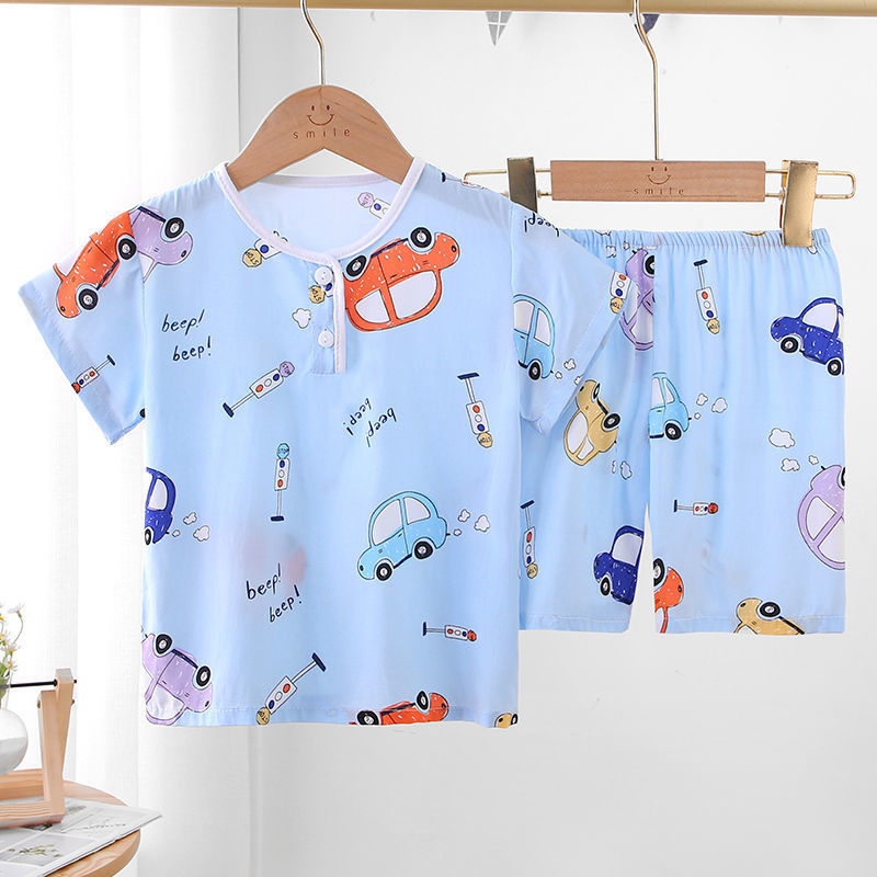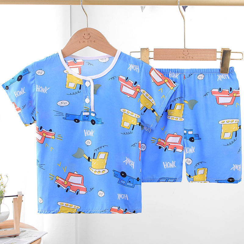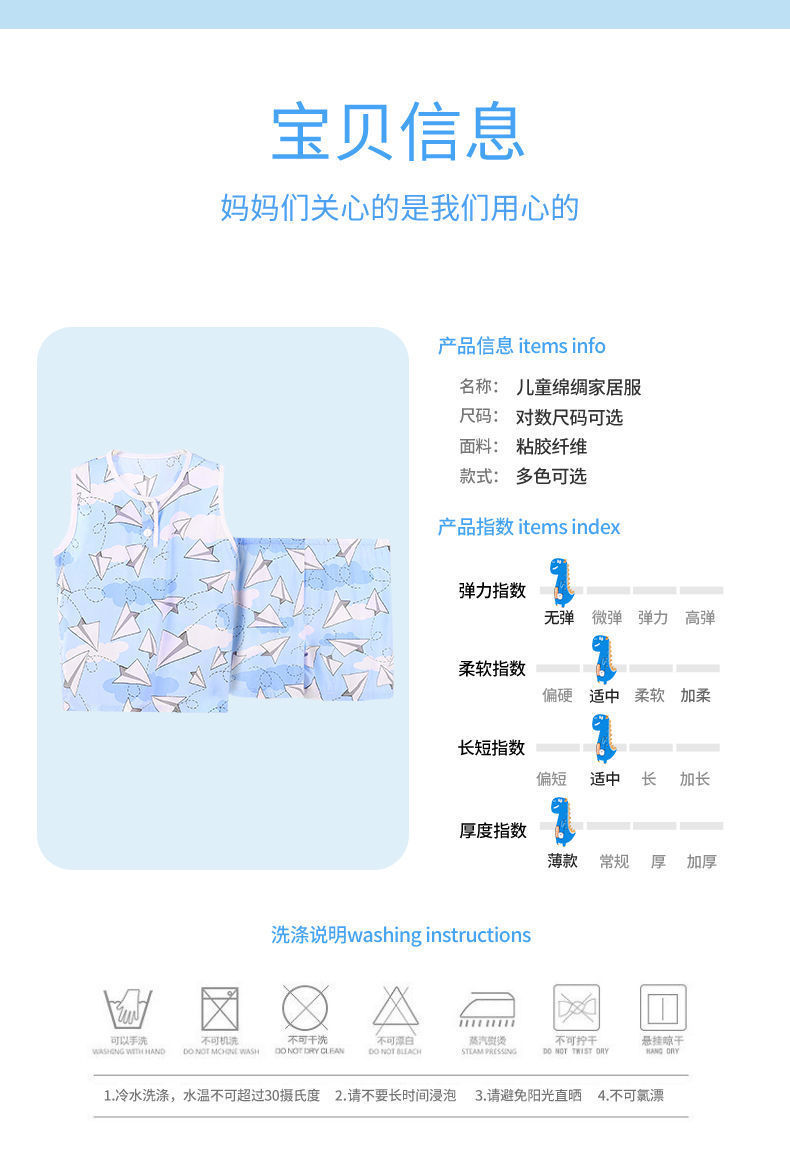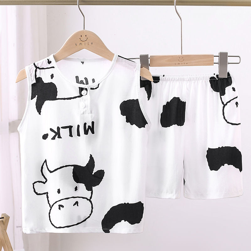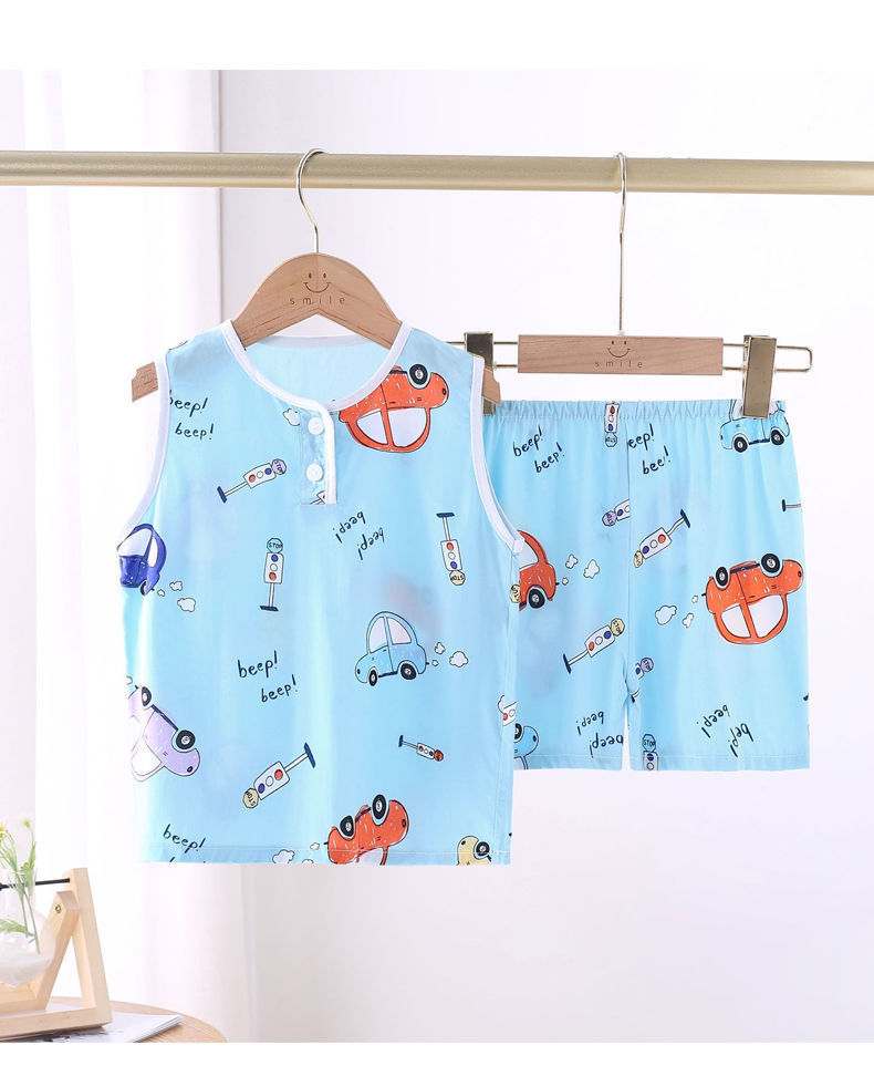 어린이를위한 조끼 정장 여름 면화 실크 소년과 소녀 얇은 민소매 반팔 잠옷 에어컨 가정 의류스토어 가기