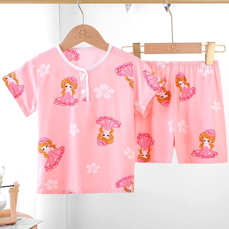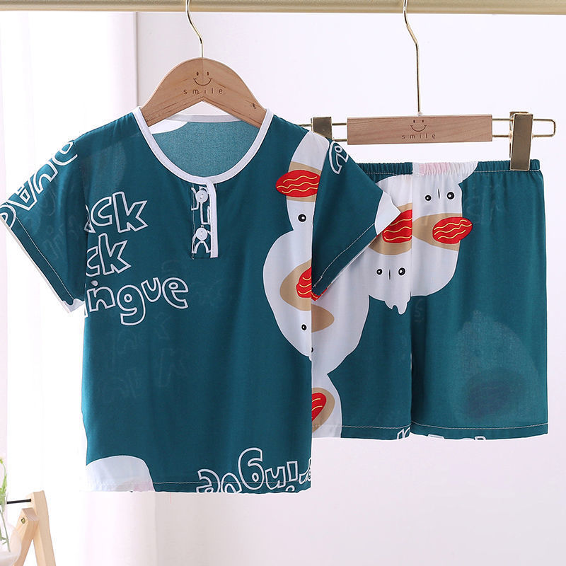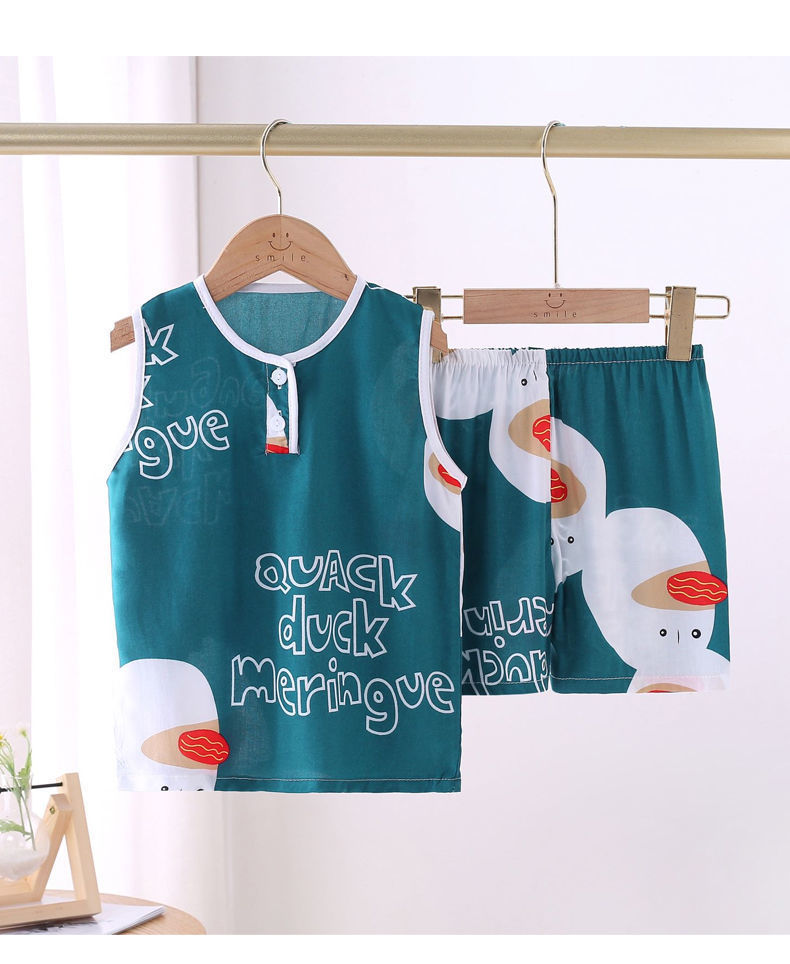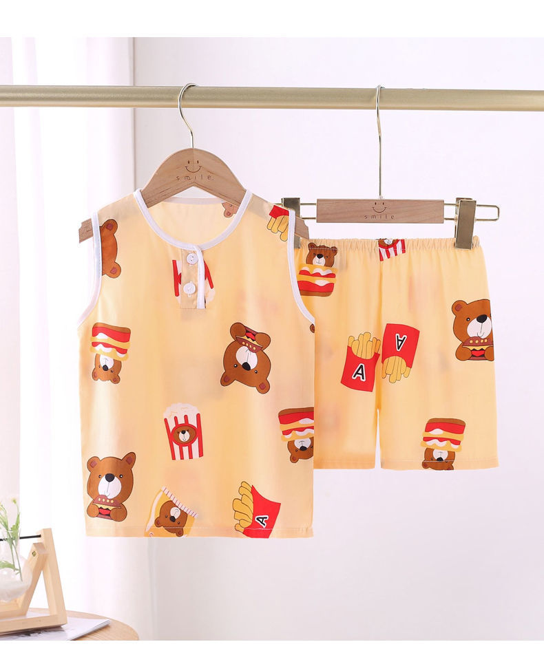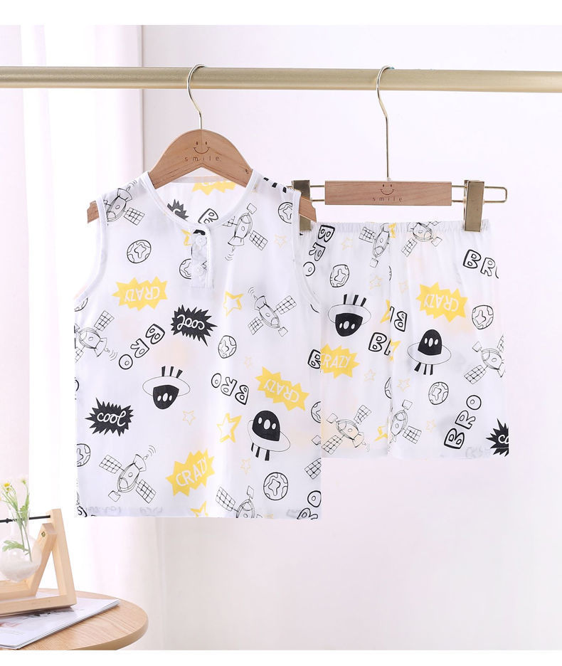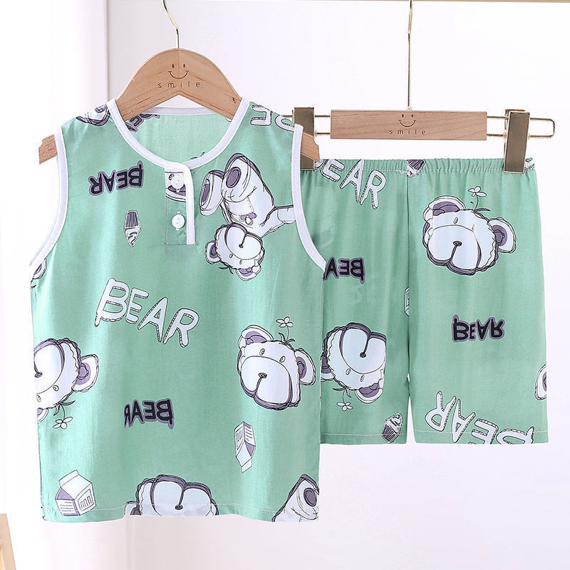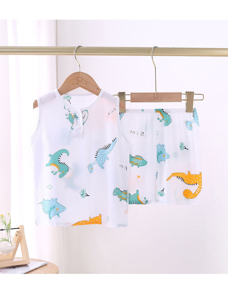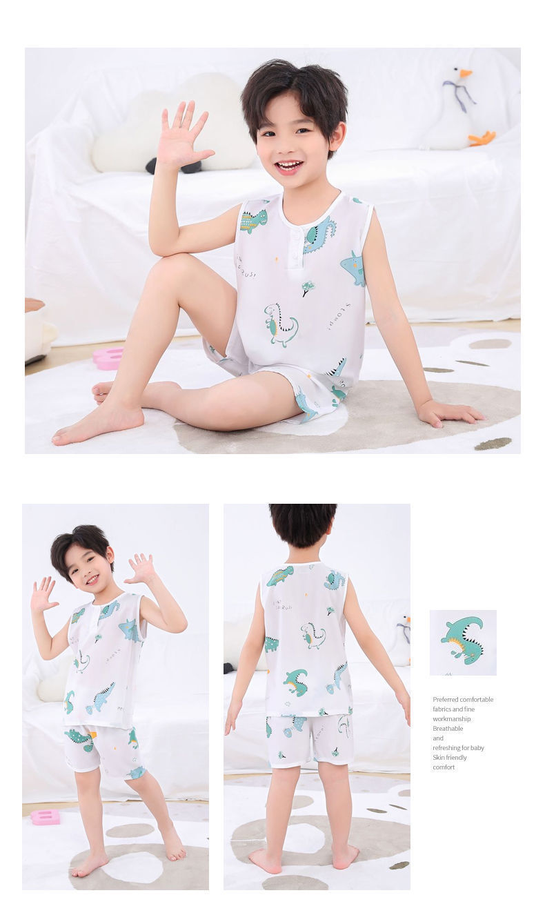 어린이를위한 조끼 정장 여름 면화 실크 소년과 소녀 얇은 민소매 반팔 잠옷 에어컨 가정 의류