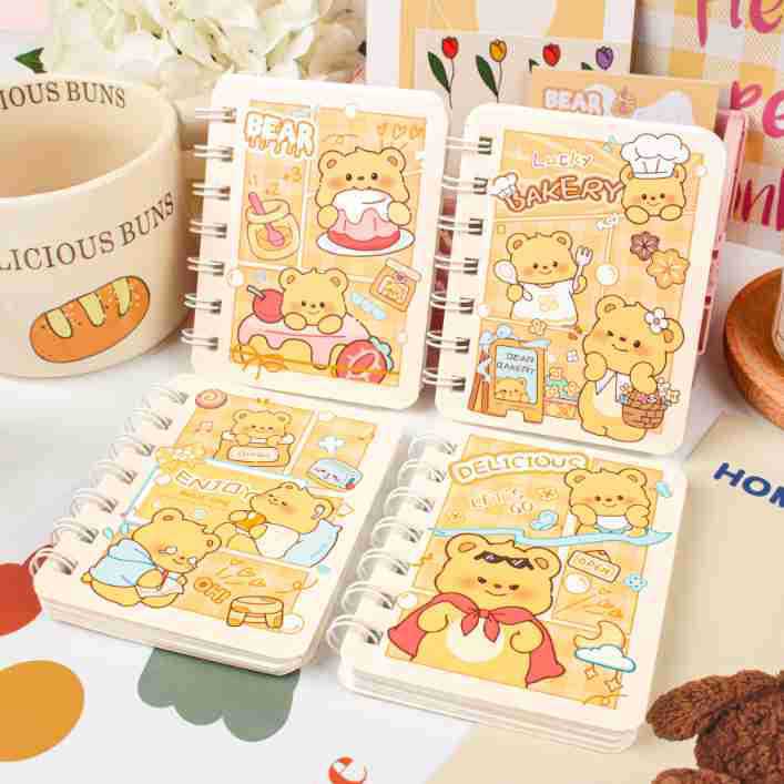 인스 스타일 귀여운 푸딩곰 코일 노트 미니 휴대용 포켓 노트 학생용 줄노트 다이어리