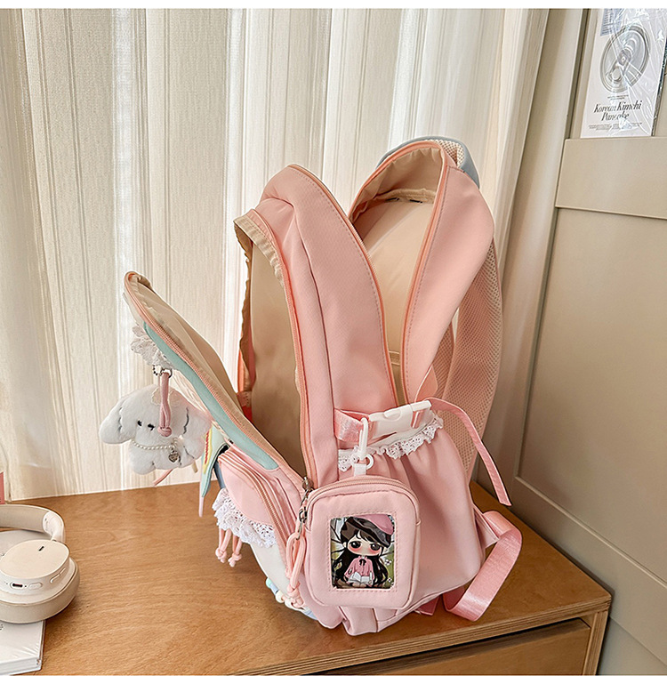 Schoolbag 여성 신작 한국어 버전 ins 신선하고 달콤하고 귀여운 대비 색상 중학생을위한 경량 대용량 배낭