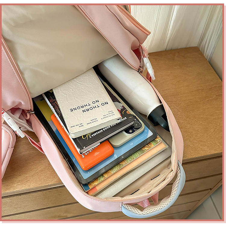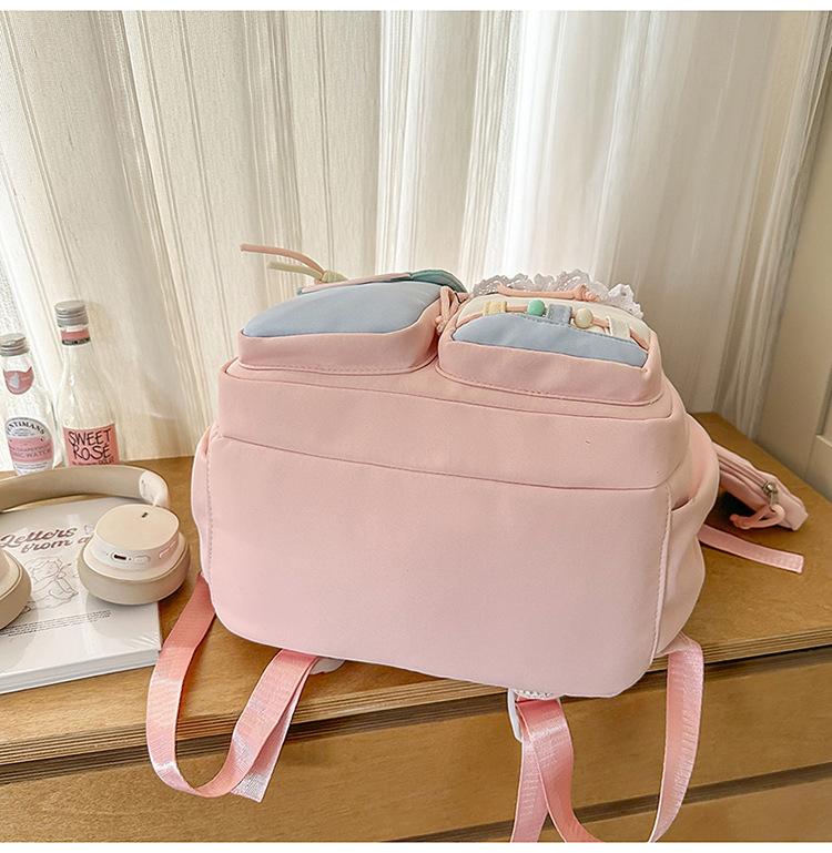 Schoolbag 여성 신작 한국어 버전 ins 신선하고 달콤하고 귀여운 대비 색상 중학생을위한 경량 대용량 배낭스토어 가기