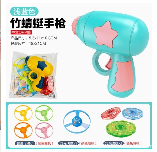 • [OPP 가방] 라이트 블루--대나무 잠자리 권총 세트(비조명 비행접시 4개 + 조명 비행접시 1개 + 조명 상단 1개)