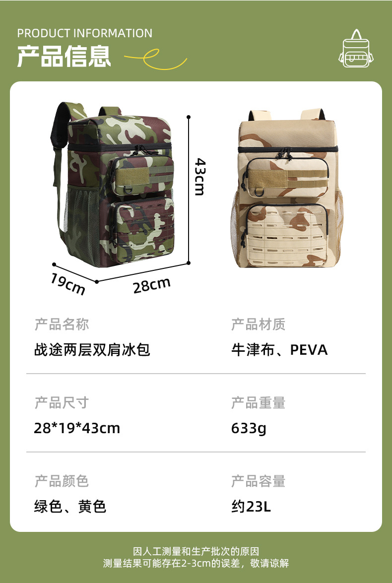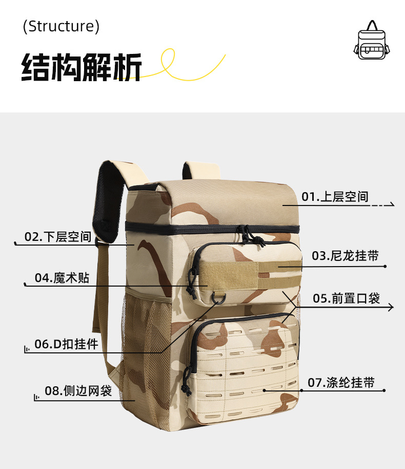야외 2층 어깨 아이스 백 옥스포드 천 PEVA 위장 피크닉 배낭 누수 방지 내부 라이너 휴대용 절연 가방
