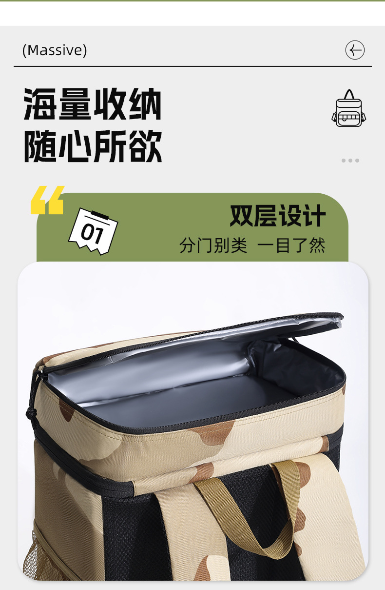 야외 2층 어깨 아이스 백 옥스포드 천 PEVA 위장 피크닉 배낭 누수 방지 내부 라이너 휴대용 절연 가방스토어 가기