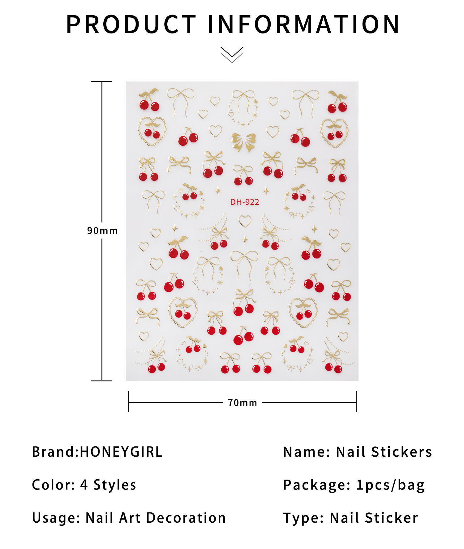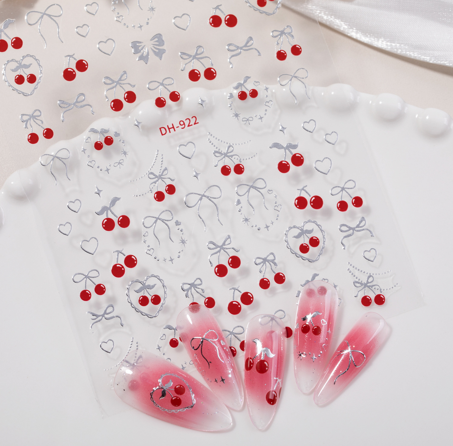 딸기 스티커 매니큐어 핫 스탬핑 복고풍 일본 귀여운 소녀 하트 체리 접착제 네일 스티커 활 스티커
