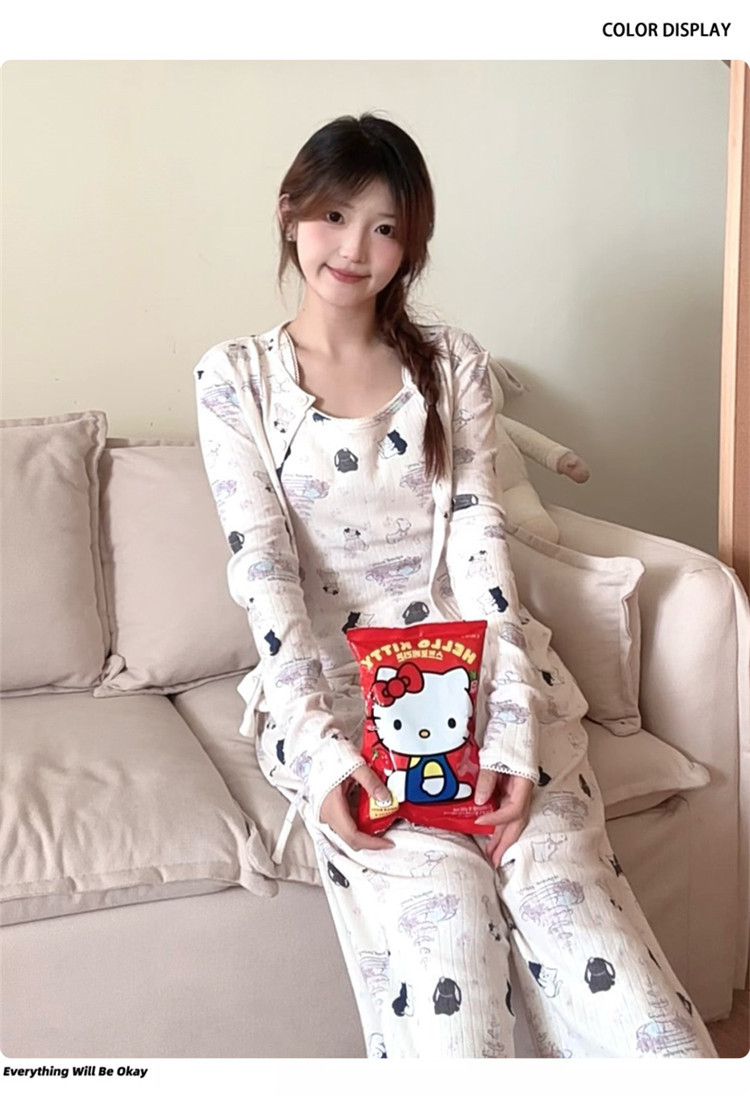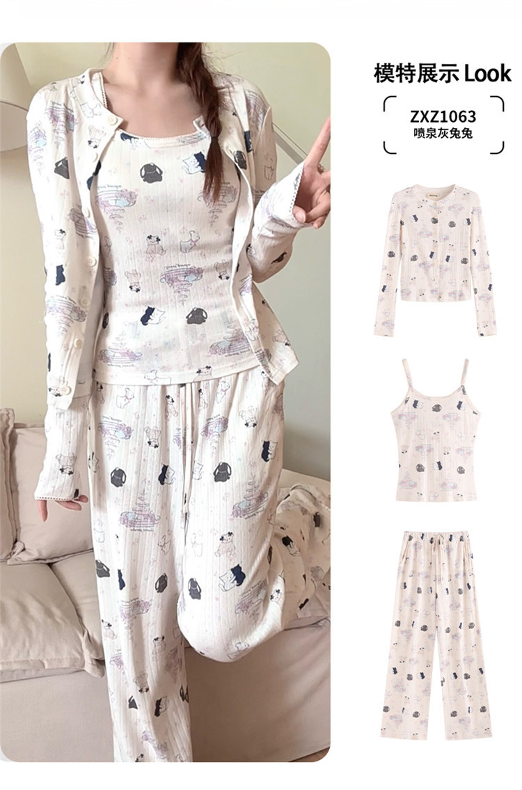 25 가을 겨울 순면 니트 만화 귀여운 분수 회색 토끼 멜빵 바지 3종 세트 외출복으로도 착용 가능스토어 가기