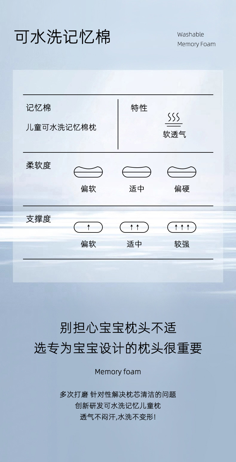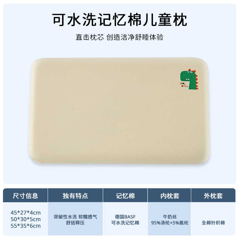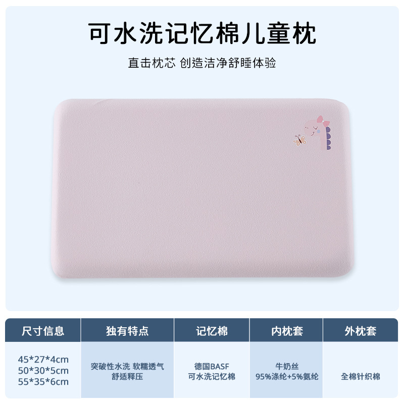 호텔과 동일한 클래스 A 어린이용 메모리폼 베개, 제로압 학생 경추 보호대, 깊은 수면용 낮은 베개 코어, 특수 세탁 가능