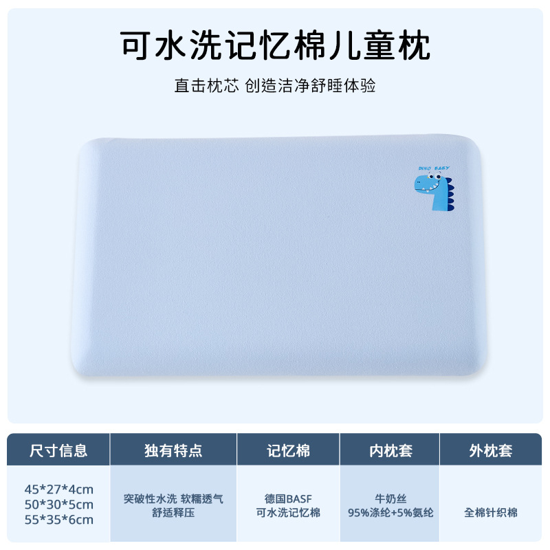 • 장난꾸러기 공룡 블루 [세탁 가능한 메모리 베개 + 면 베개 커버]
