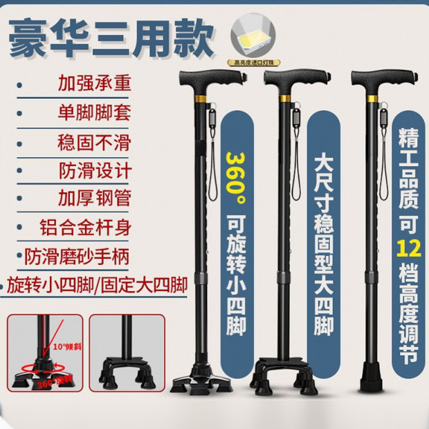 노인용 지팡이, 미끄럼 방지 지팡이, 노인용 지팡이 보행 보조기, 4발 지팡이, 지팡이, 접이식 다기능 지팡이