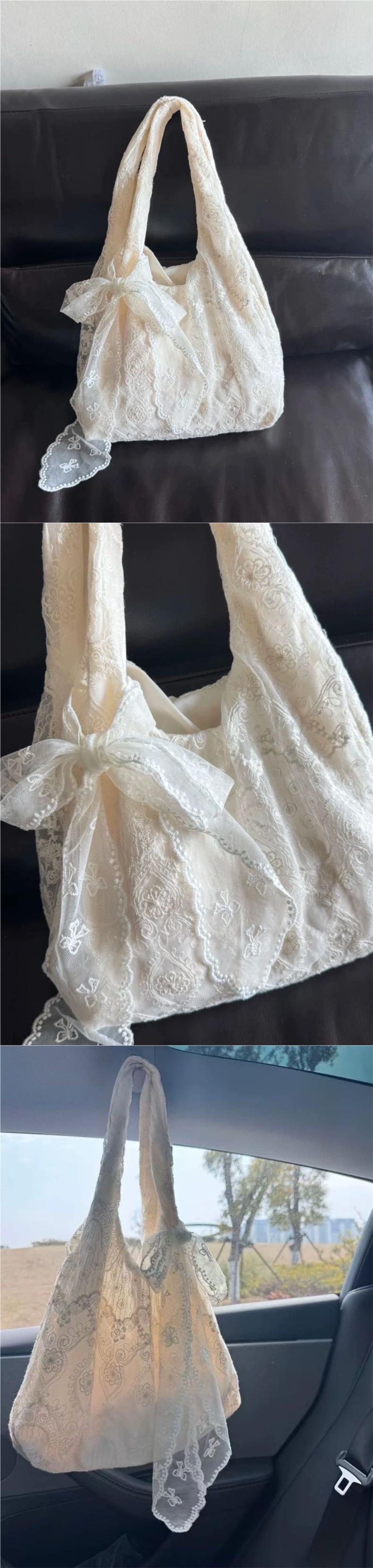 한국 스타일 작은 신선한 레이스 꽃 캔버스 가방 여성 새로운 대용량 어깨 가방 무료 배송스토어 가기