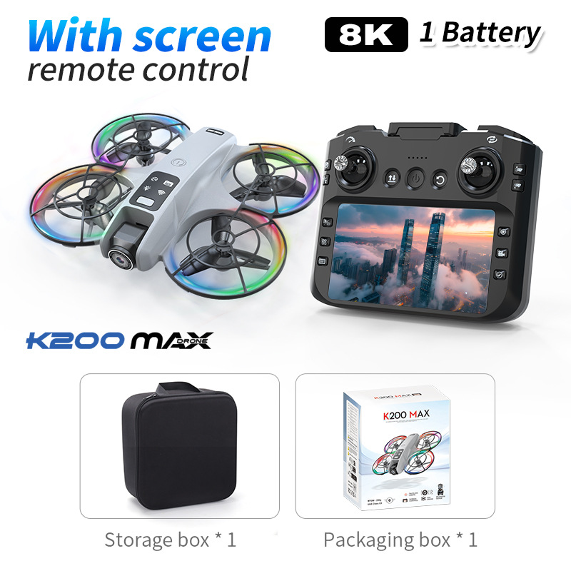 스크린 제어 기능이 있는 국경 간 신제품 K200 브러시리스 모터 조명 드론 HD 항공 사진 다채로운 조명 원격 제어 항공기