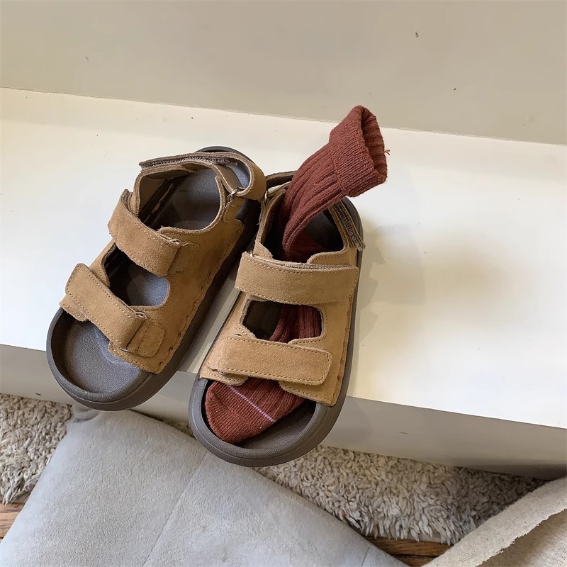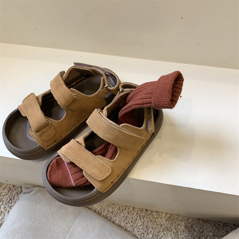 레트로 한국 여름 아동화, 아동 샌들, 여아 로마 신발, 벨크로 남아 비치 샌들