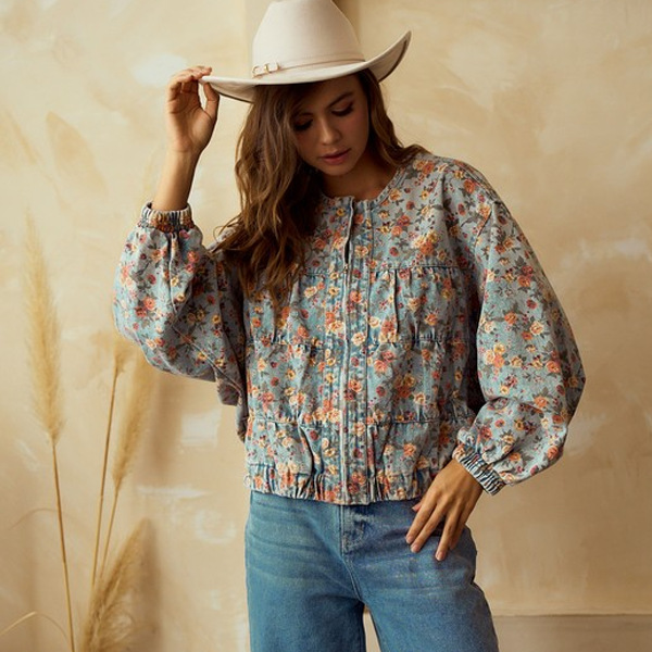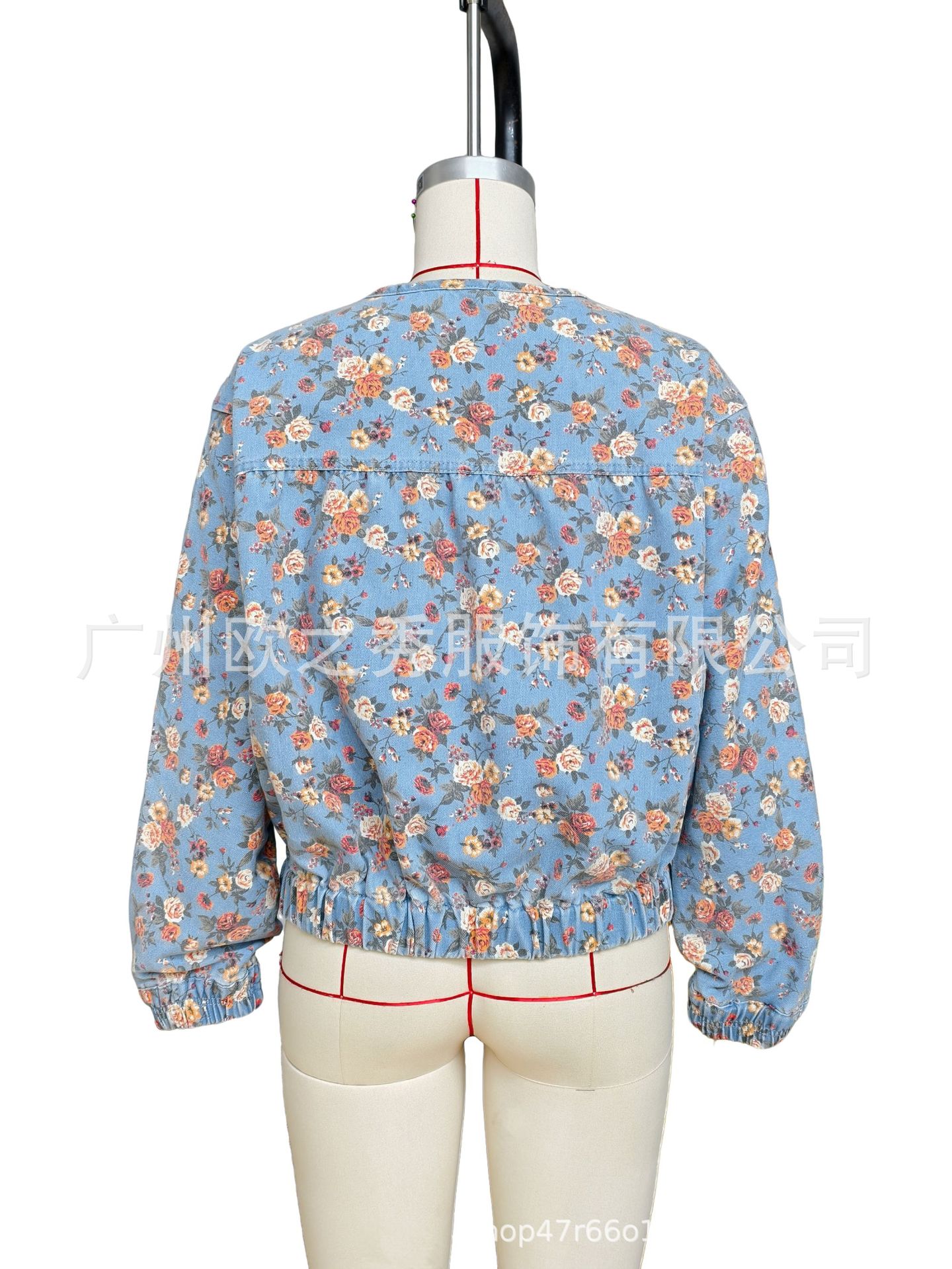 국경 간 유럽과 미국의 새로운 프린트 데님 재킷 느슨한 긴팔 복고풍 꽃무늬 배트 슬리브 워시 데님 재킷 여성용스토어 가기