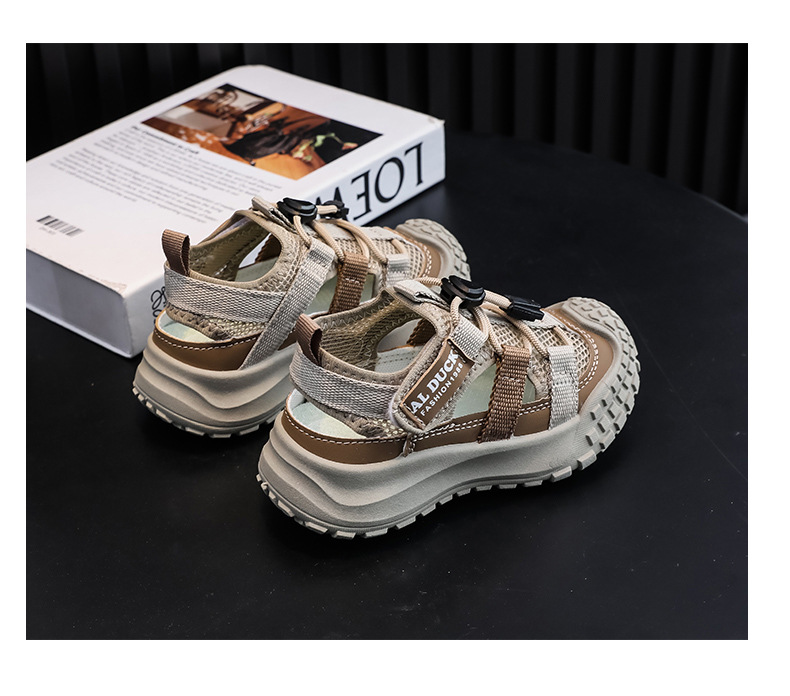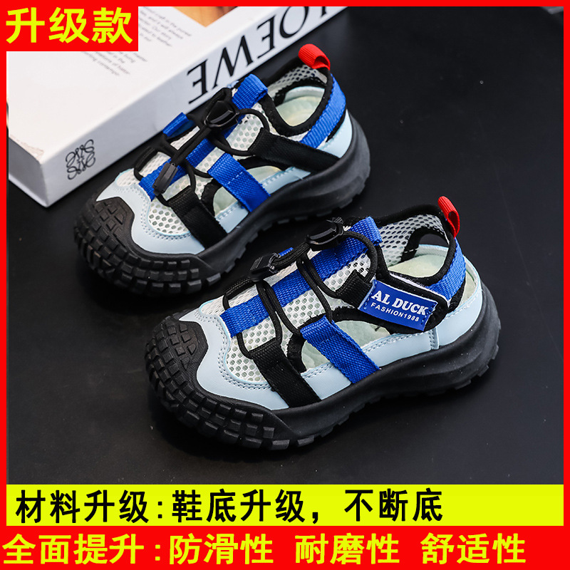 여아용 봄 여름 벨크로 중공 샌들, 대형 어린이 및 소년용 충돌 방지 앞코 신발, 신축성 있는 밴드 운동화