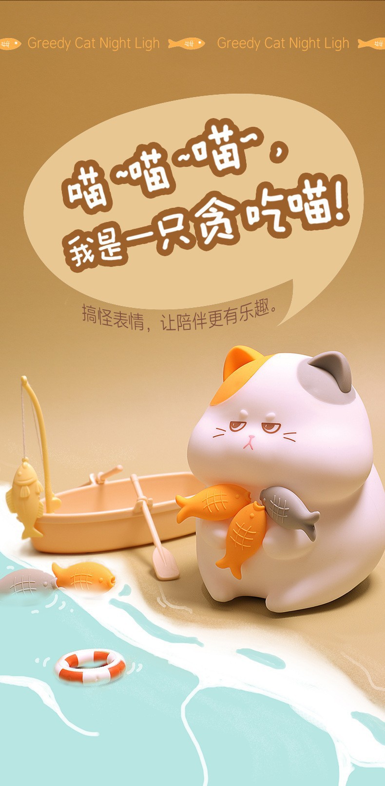 수면과 수유를 위한 배고픈 고양이 야간 조명, 고급 분위기 조명, 인터넷 연예인 핫 스타일 팻 라이트, 데스크탑 장식품, 소형 테이블 램프스토어 가기