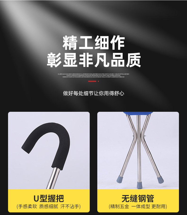 노인용 지팡이 및 지팡이 의자, 접이식 미끄럼 방지 지팡이, 노인용 스툴이 있는 다기능 의자, 지팡이 의자에 앉을 수 있음