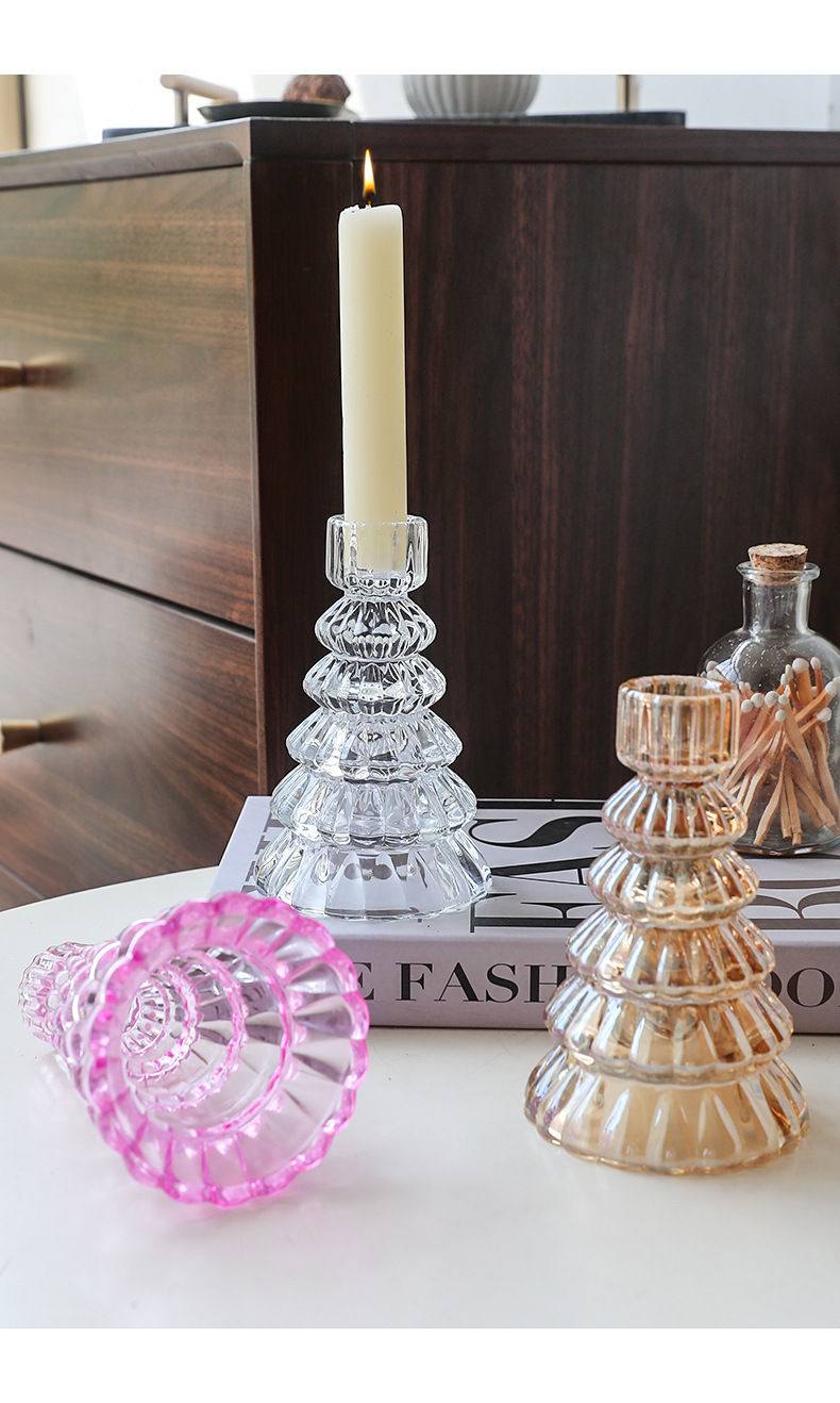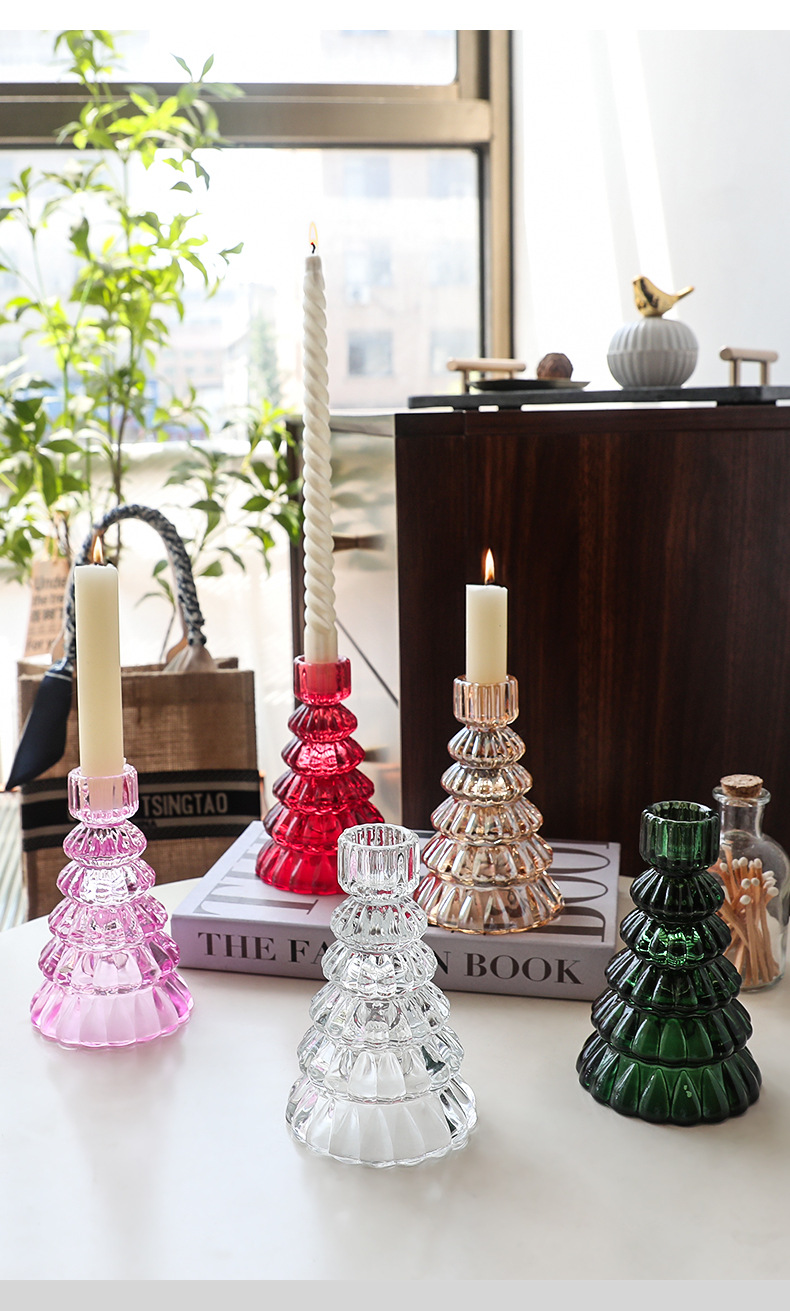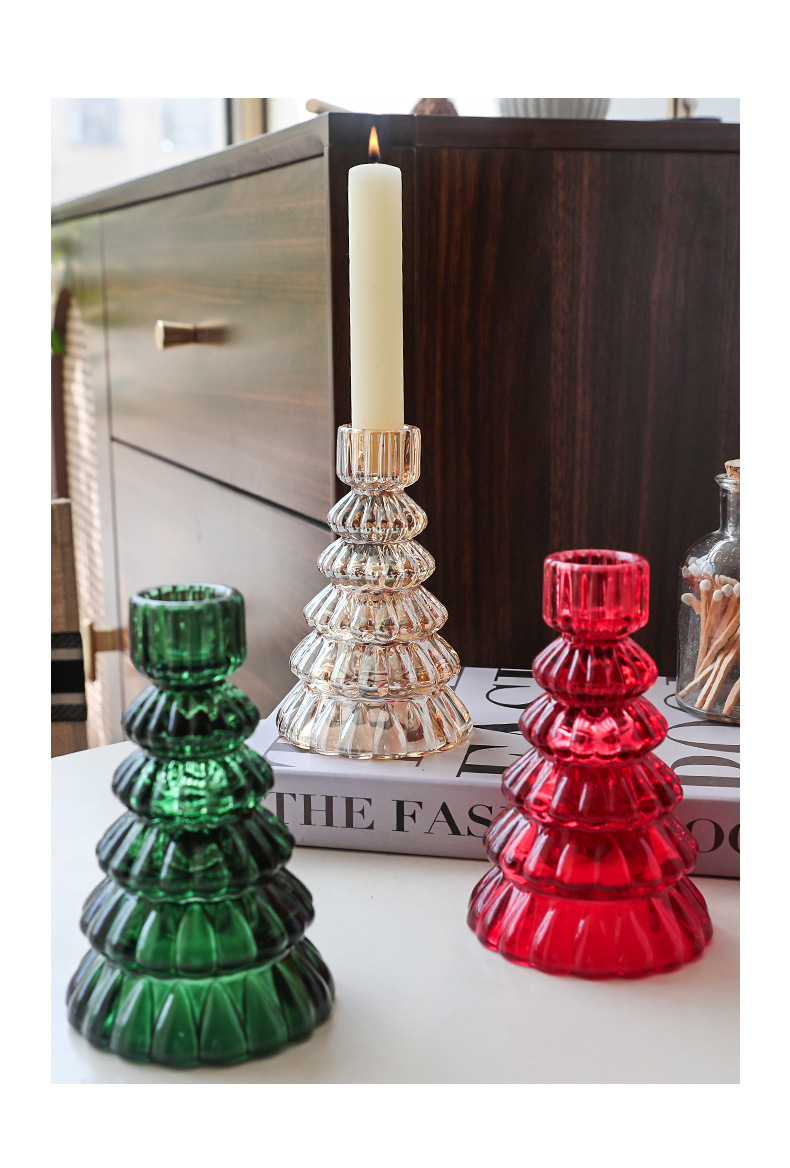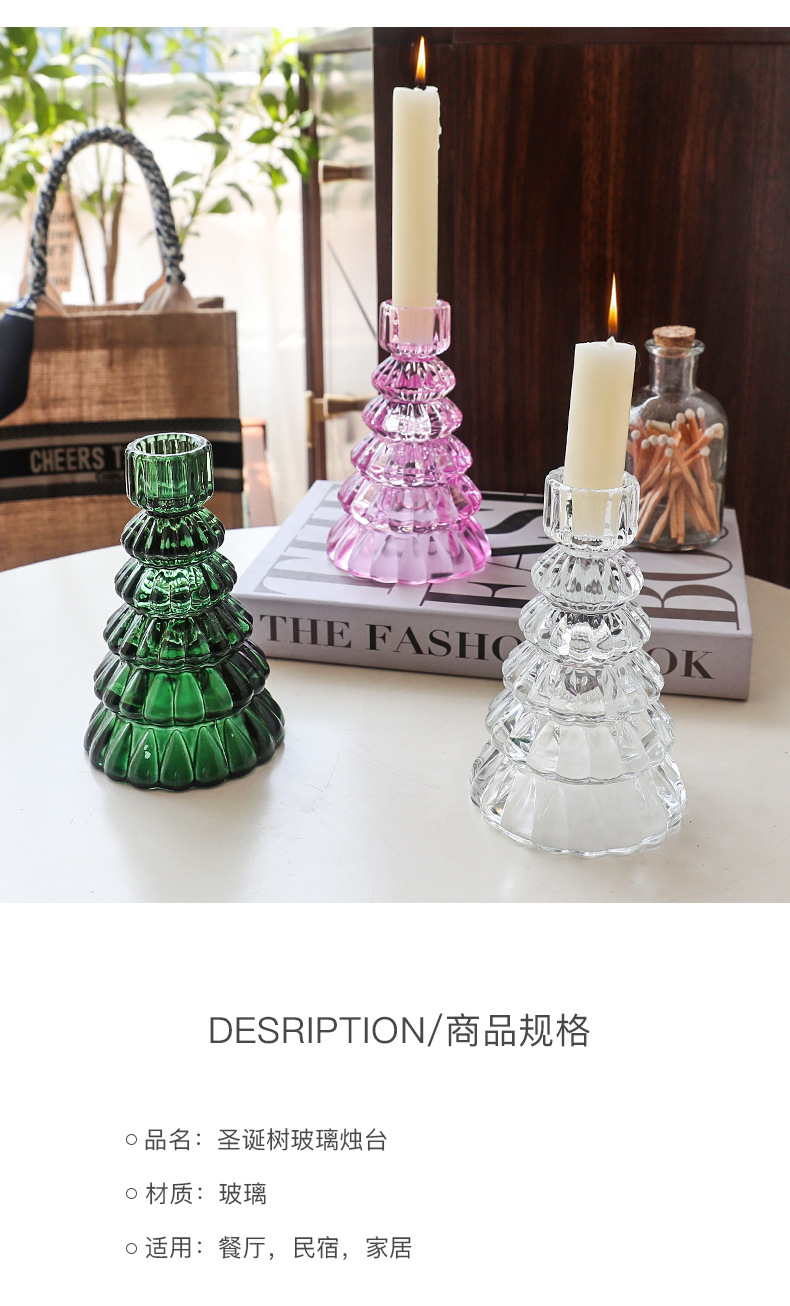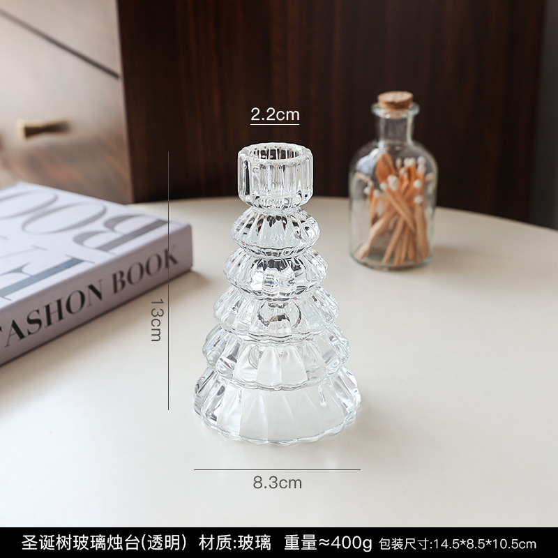 간단한 투명 유리 크리스마스 트리 촛대 장식품 크리스마스 장식 장면 레이아웃 분위기 촛불 저녁 식사스토어 가기
