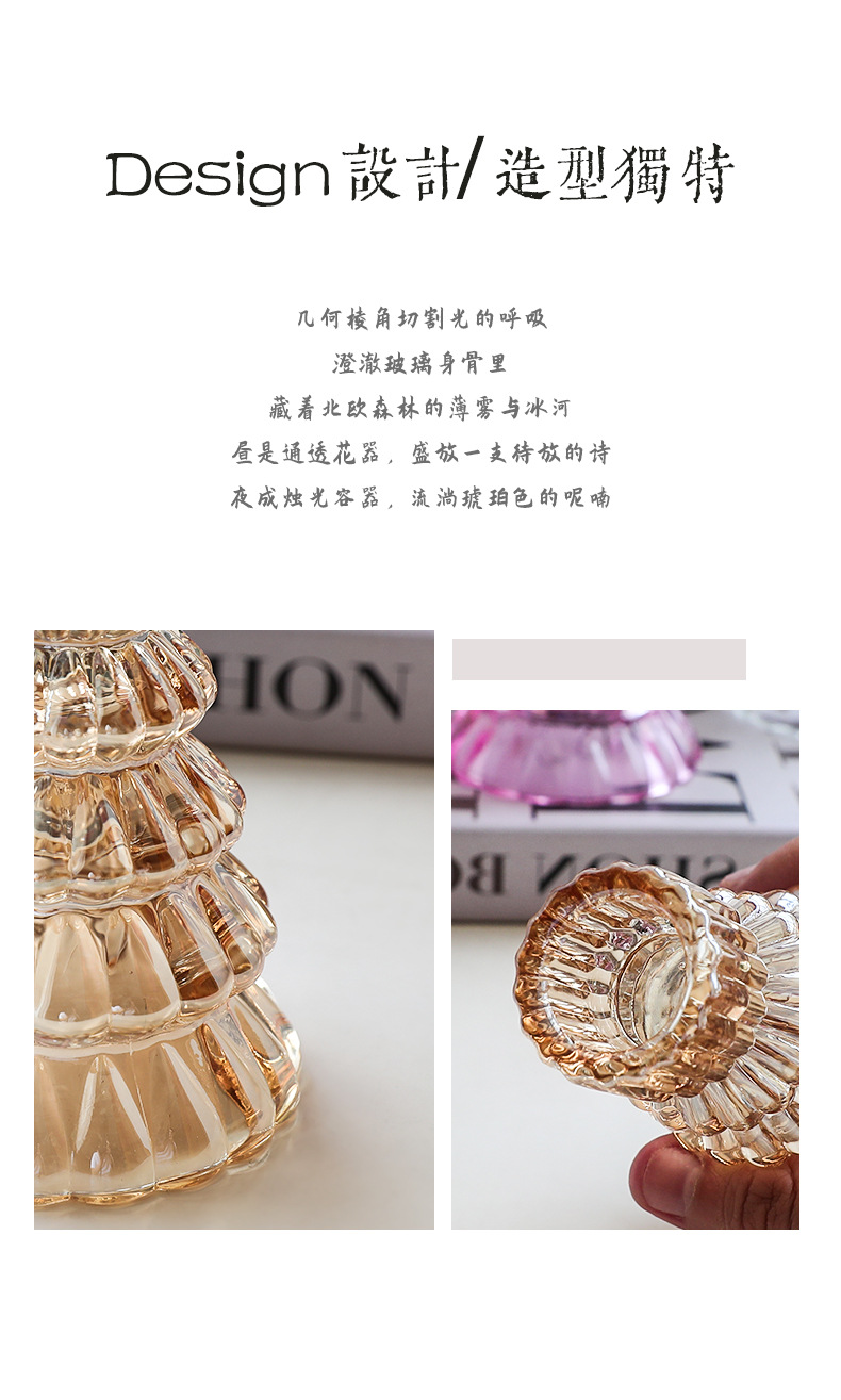 • 크리스마스 트리 유리 캔들 홀더 - 투명 핑크